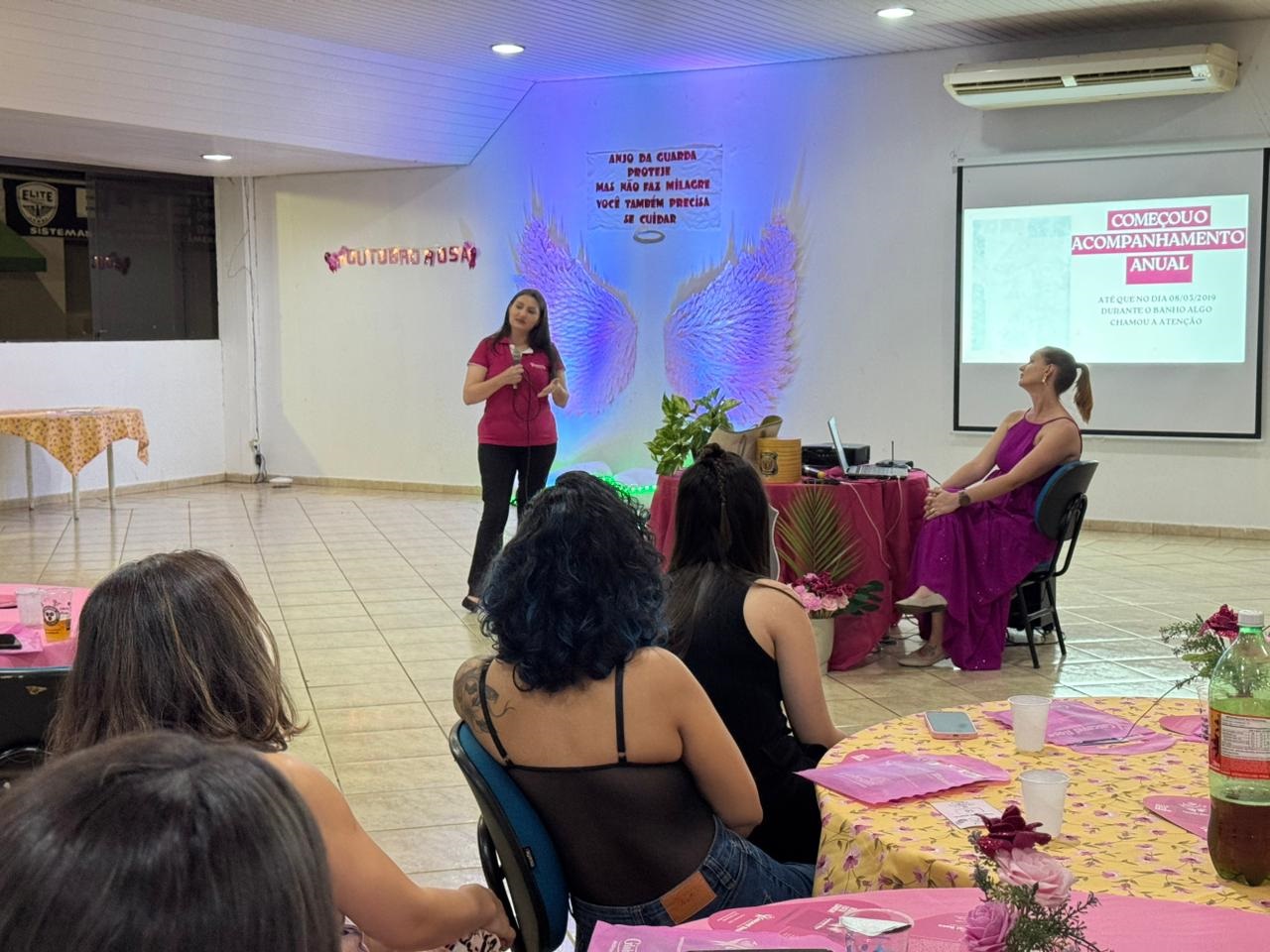 O encontro contou com uma palestra informativa da médica e cirurgiã oncológica Tariane Foiato, que destacou a importância dos cuidados regulares, como o autoexame, e a realização de exames de rotina para a detecção precoce da doença. “O câncer de mama tem uma tendência a se desenvolver quando a mulher está com idade entre 40 e 50 anos. É nesse momento que ela precisa começar a ter mais atenção. Procurar um oncologista ou um ginecologista pode orientar nos exames, principalmente a mamografia, para um diagnóstico eficaz. Ainda existem outros exames que podem ajudar no rastreio da doença, mas vale muito cuidar com a prevenção”, afirmou a especialista.