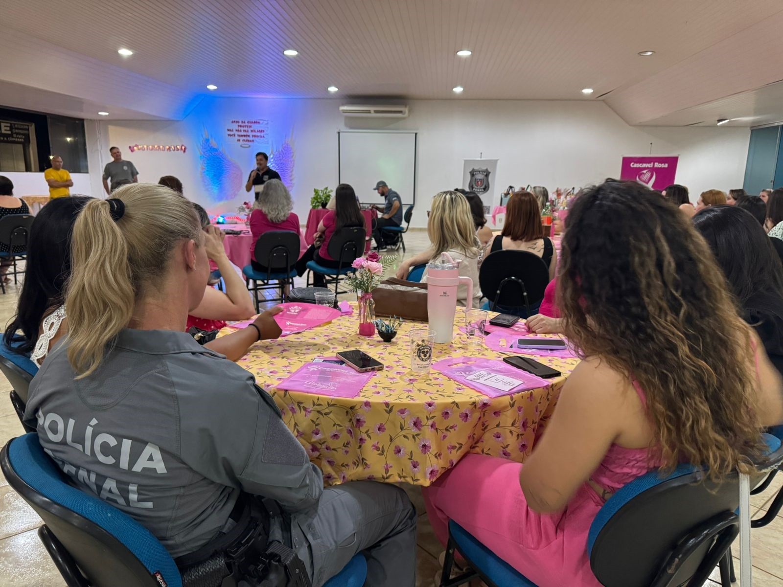 O salão verde da Sociedade Rural de Cascavel foi palco, ontem (30), de um evento especial de conscientização e prevenção do câncer de mama promovido pela Polícia Penal do Paraná (PPPR). Com foco no movimento Outubro Rosa, a ação reuniu cerca de 60 participantes, incluindo servidoras da PPPR, professoras que atuam no sistema prisional local e convidadas.