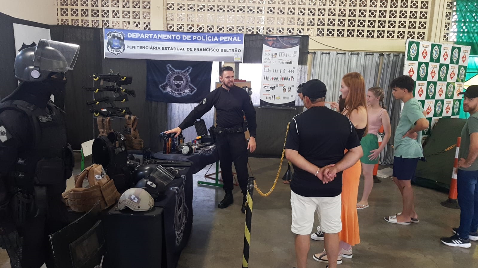 O diretor da regional administrativa da PPPR em Francisco Beltrão, Marcos Andrade, enfatiza a receptividade por parte da população que tem prestigiado o evento. “Esta é nossa primeira participação e já contamos uma excelente interação com o público. Estamos passando, de maneira fidedigna, aquilo que nós usamos no dia a dia em nossos setores especiais, na contenção, nas transferências de apenados, nas escoltas, no apoio aos nossos gestores. Está sendo muito legal este contato com pessoas que querem aprender um pouco mais, ou terem informações mais objetivas, referente àquilo que a PPPR desenvolve nas unidades penais e fora delas. Hoje, não somos uma força que atua apenas intramuros, mas prestamos apoio às outras forças de segurança, além de realizar todas as movimentações e transferências de apenados somente com estrutura própria”, explica.