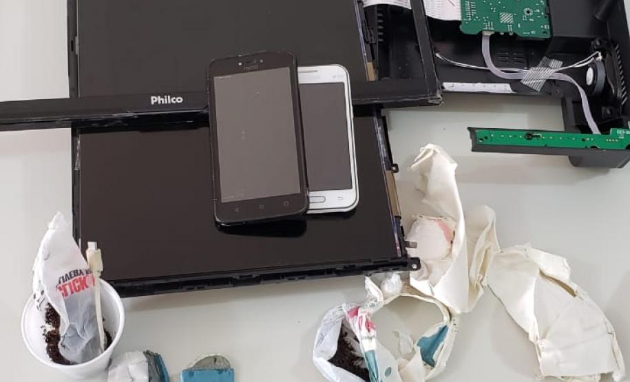 Dois celulares, 10 gramas de cocaína, uma porção de maconha e 15 gramas de fumo foram apreendidos por agentes penitenciários que atuam na Penitenciária Estadual de Cascavel (PEC), no oeste do estado, nesta quinta-feira (30/07). O material estava dentro de uma televisão, a qual foi enviada por meio de SEDEX, pelo familiar de um preso.