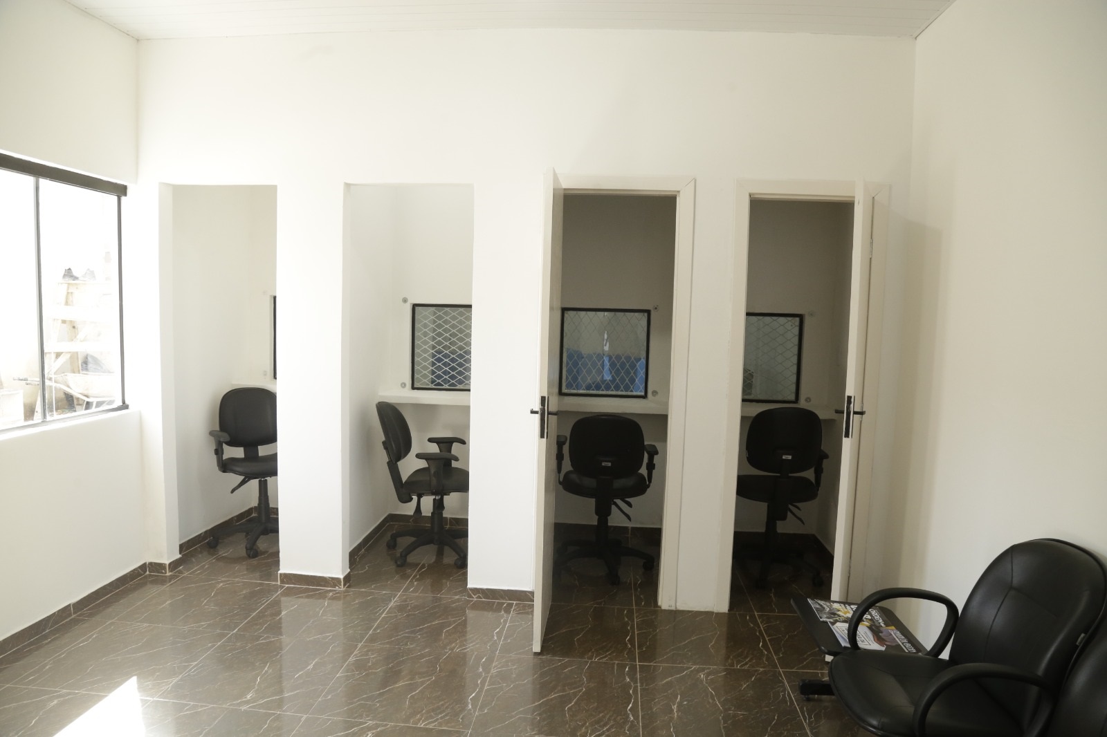 Uma parceria entre a Polícia Penal do Paraná (PPPR) e a Ordem dos Advogados do Brasil (OAB/Paraná e OAB/Guarapuava) promoveu a ampliação e modernização do parlatório da Cadeia Pública (CP) de Guarapuava, na região central do estado. O ambiente contava com apenas uma área para diálogo entre advogado e cliente e agora passou a contar com quatro cabines privativas, sendo possível a realização de atendimentos simultâneos. O espaço foi cuidadosamente construído para garantir que profissionais da área de advocacia criminal possam se comunicar de maneira digna com seus clientes e apenados, preservando assim o sigilo das comunicações.