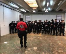 O coordenador do curso na regional de Cascavel, Rodrigo Cardoso, explica que a formação somou 80 horas de atividades. Foram abordados temas como direitos humanos; legislações internacional, federal e estadual relativas ao uso diferenciado da força; técnicas de algemamento, imobilização tática e controle de presos agressivos.