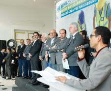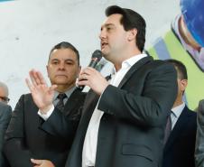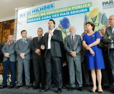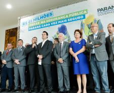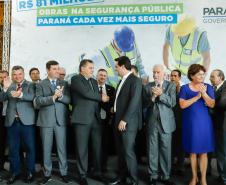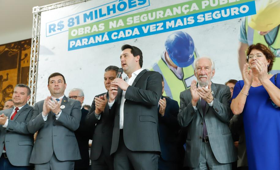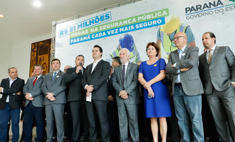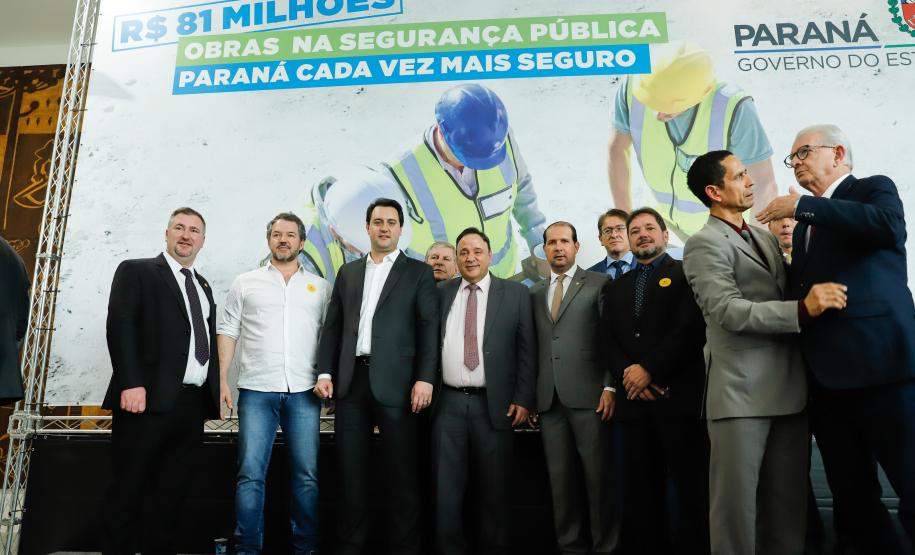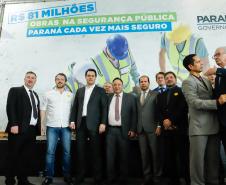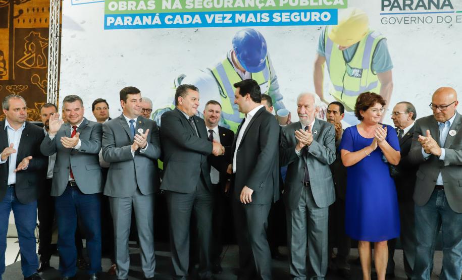 PRESENÇAS – Participaram da solenidade o vice-governador Darci Piana; o chefe da Casa Civil, Guto Silva; o secretário de Infraestrutura e Logística, Sandro Alex; o comandante-geral do Corpo de Bombeiros, coronel Samuel Prestes; o delegado-geral-adjunto Riad Farhat; os deputados estaduais Hussein Bakri (líder do Governo), Luiz Cláudio Romanelli, Delegado Fernando, Nelson Justus, Delegado Jacovós, Marcel Micheletto, Emerson Bacil, Douglas Fabrício, Cobra Repórter, Élio Rusch e Jonas Guimarães; além de prefeitos, vereadores, delegados e diretores de unidades penitenciárias.