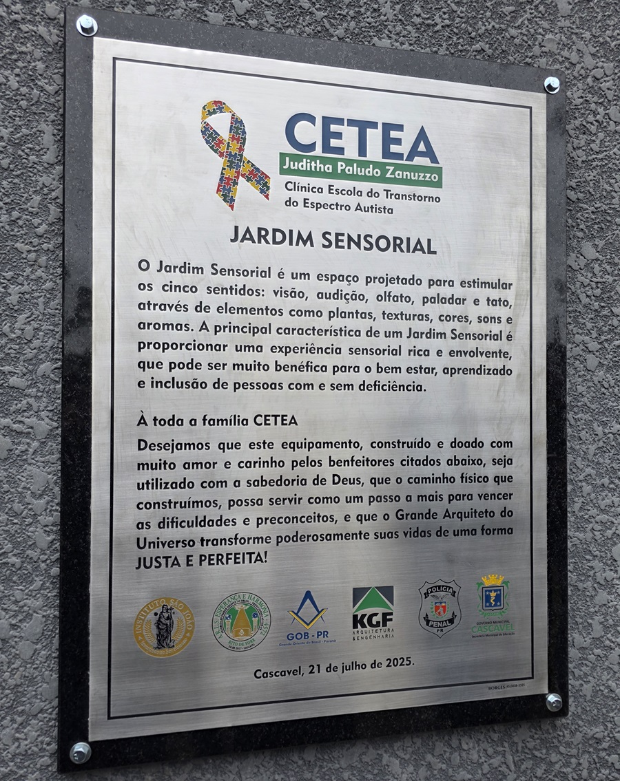 “Para nós da Polícia Penal foi, sem dúvida alguma, muito gratificante poder participar da construção do Jardim Sensorial. Jardim este que trará benefícios a dezenas de crianças e também representa um avanço importante na valorização do trabalho das pessoas privadas de liberdade. O objetivo desse espaço é promover o desenvolvimento sensorial, a conexão com a natureza e o bem-estar físico e emocional das crianças atendidas pela CETEA. Agradecemos à Loja Maçônica, à Prefeitura Municipal, à Secretaria de Educação e, principalmente, aos policiais penais envolvidos. Sem o empenho desses profissionais e o comprometimento dos custodiados que se dedicaram com respeito e responsabilidade, não teríamos alcançado o sucesso deste projeto”, afirmou o coordenador regional da PPPR em Cascavel, Thiago Correia.