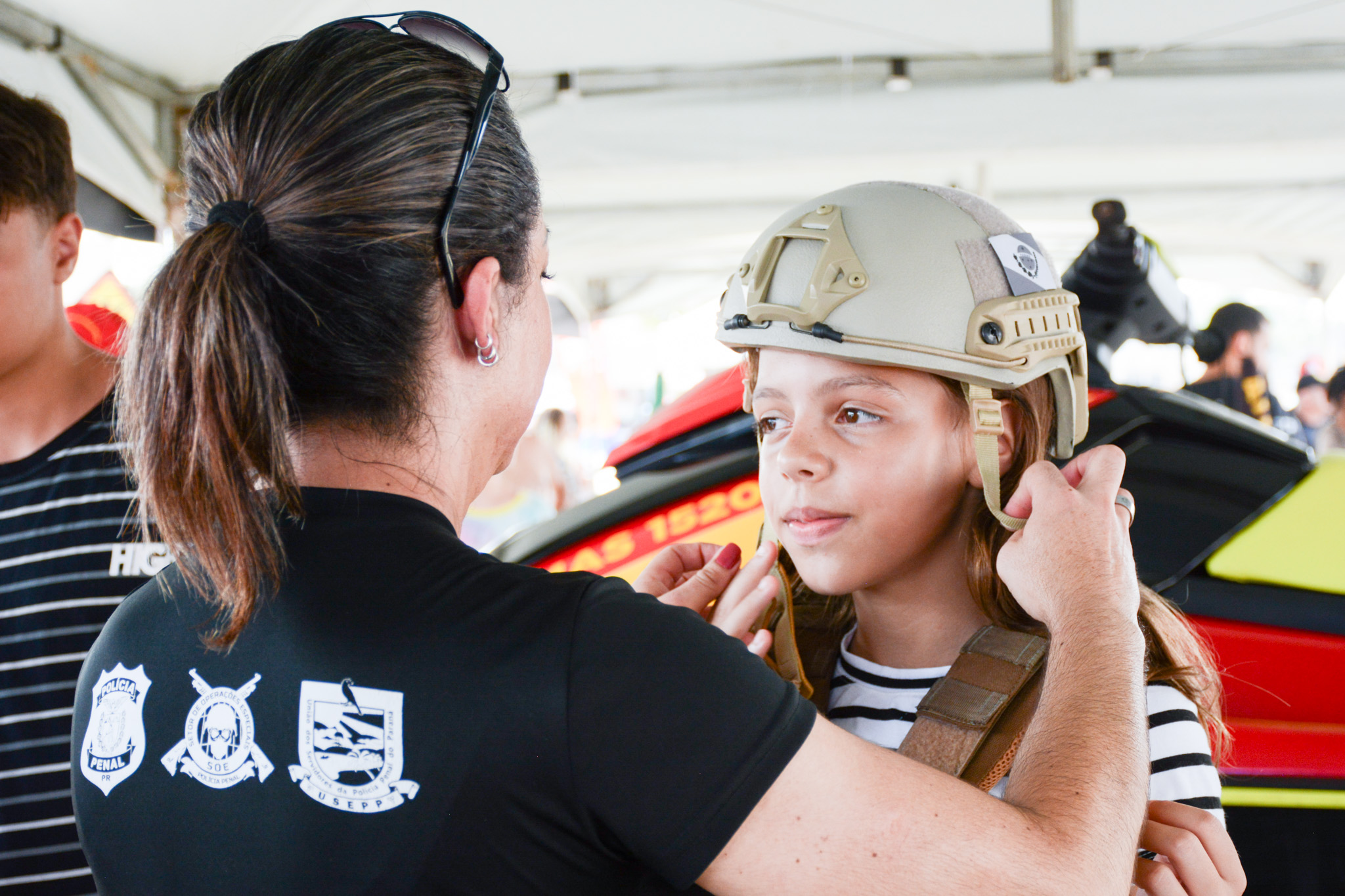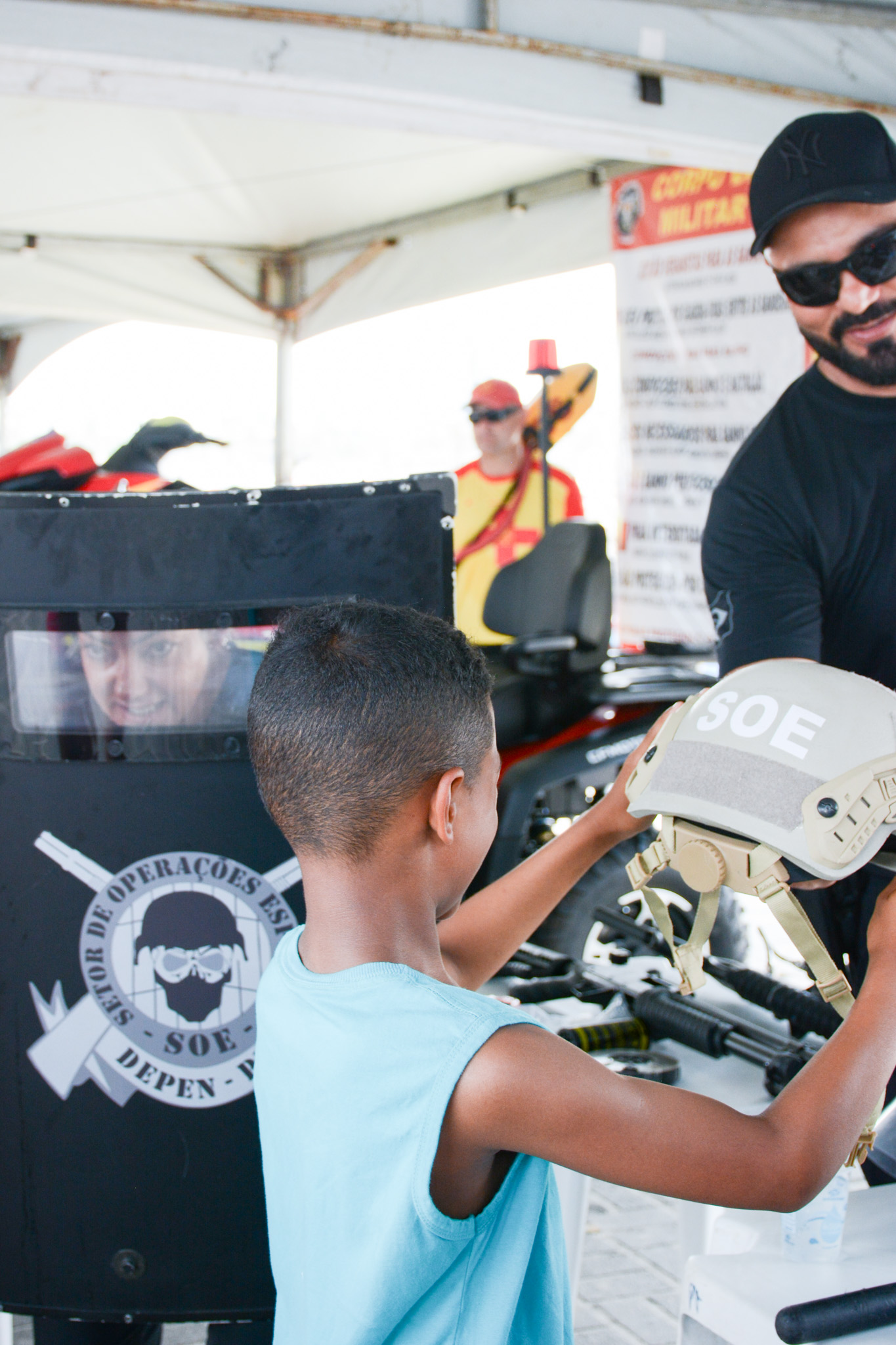 “Estamos aqui para dar informações à população, fazendo uma breve apresentação de cada instituição, desde a atuação delas, como os serviços que cada uma disponibiliza. Temos ações de saúde e atividades para crianças, além das apresentações com os cães policiais. Tudo isso para aproximar as pessoas das forças de segurança, para que saibam que estamos à disposição da população sempre”.