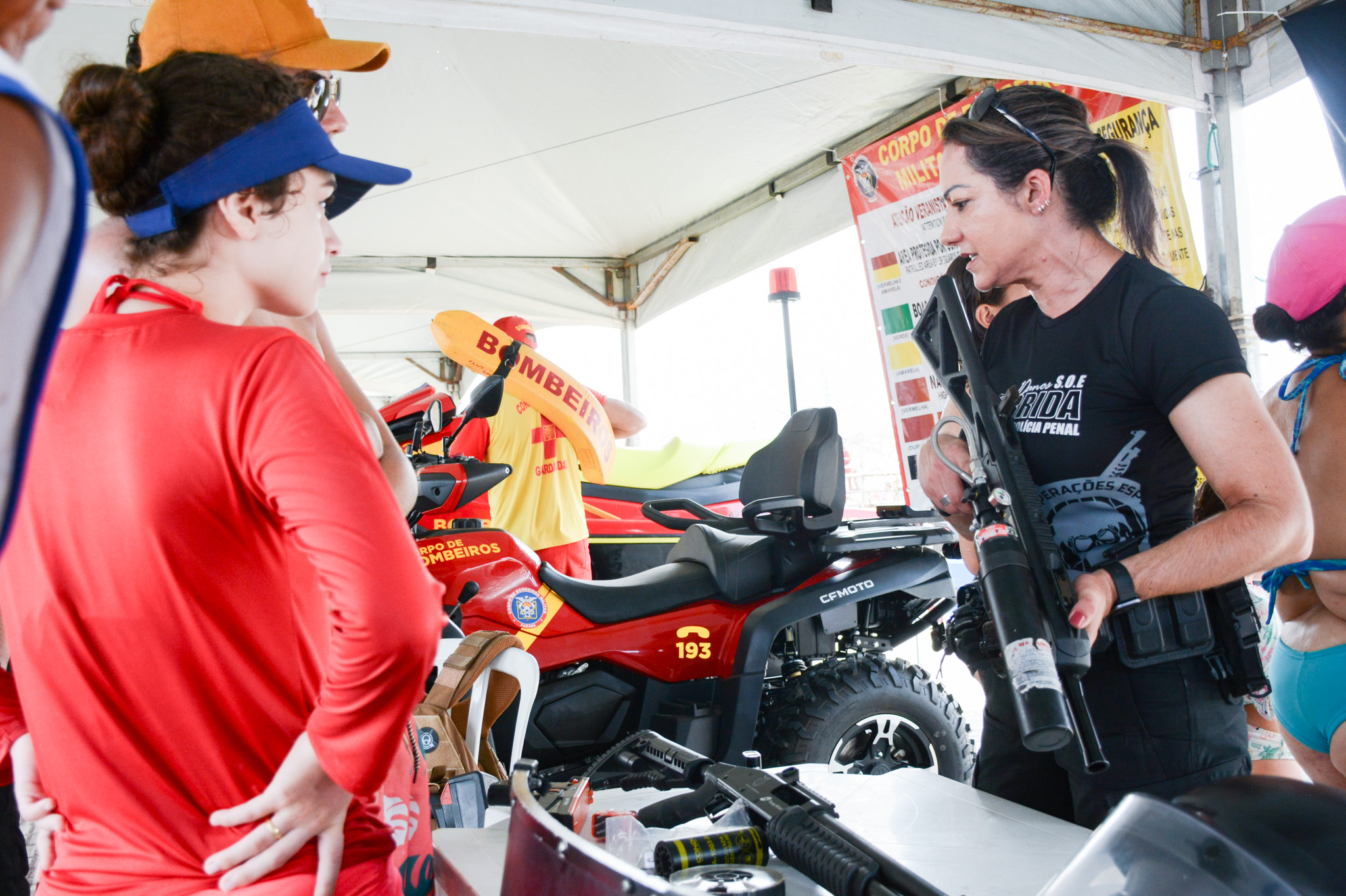 A Secretaria da Segurança Pública (Sesp) do Paraná lançou o Ciclo de Exposições das Forças de Segurança no Litoral, que contará com a participação das polícias Penal, Militar, Civil, Científica e do Corpo de Bombeiros. As equipes apresentam equipamentos e veículos das instituições, para que a população possa conhecer a estrutura e ter maior aproximação com a área das forças.