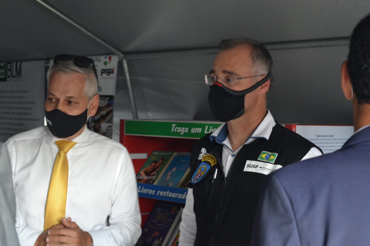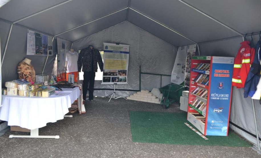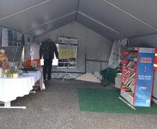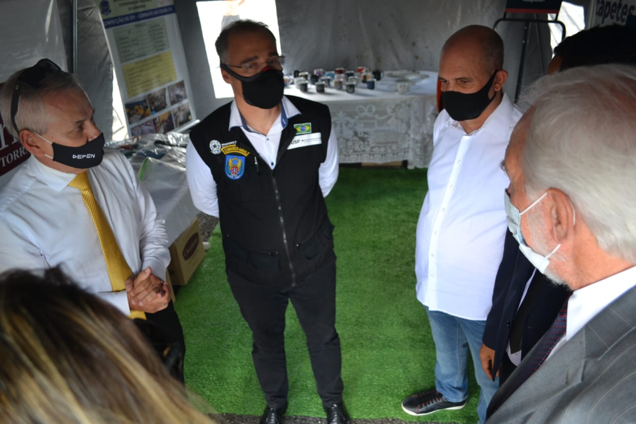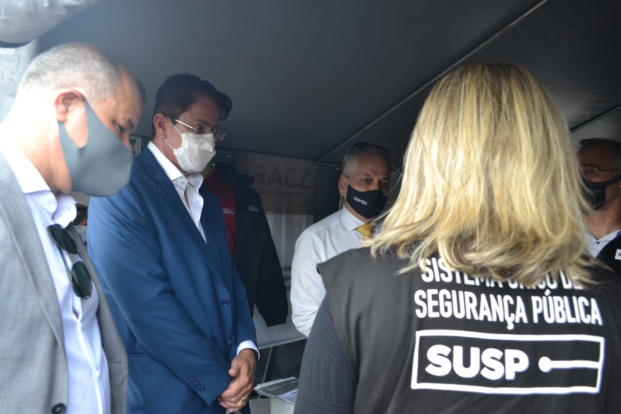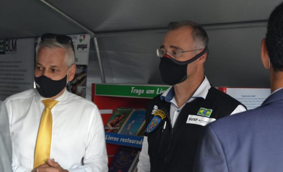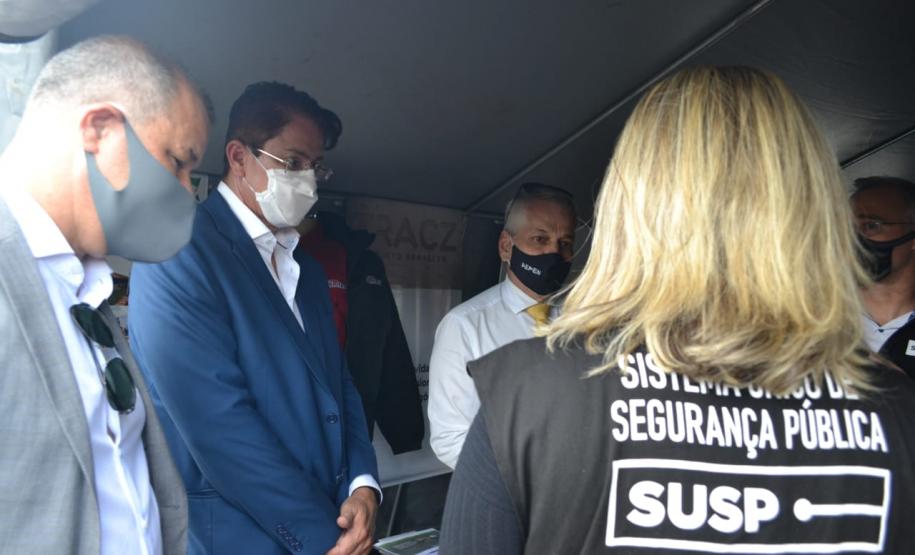 EXPOSIÇÃO - O Ministro também esteve presente em uma mostra que expôs produtos produzidos por presos nas penitenciárias de todo o Estado, realizada nas dependências da Academia Militar do Guatupê, em São José dos Pinhais. No local, ele visitou ainda o estande com armamentos utilizados pelos grupos especiais que atuam no sistema penitenciário.