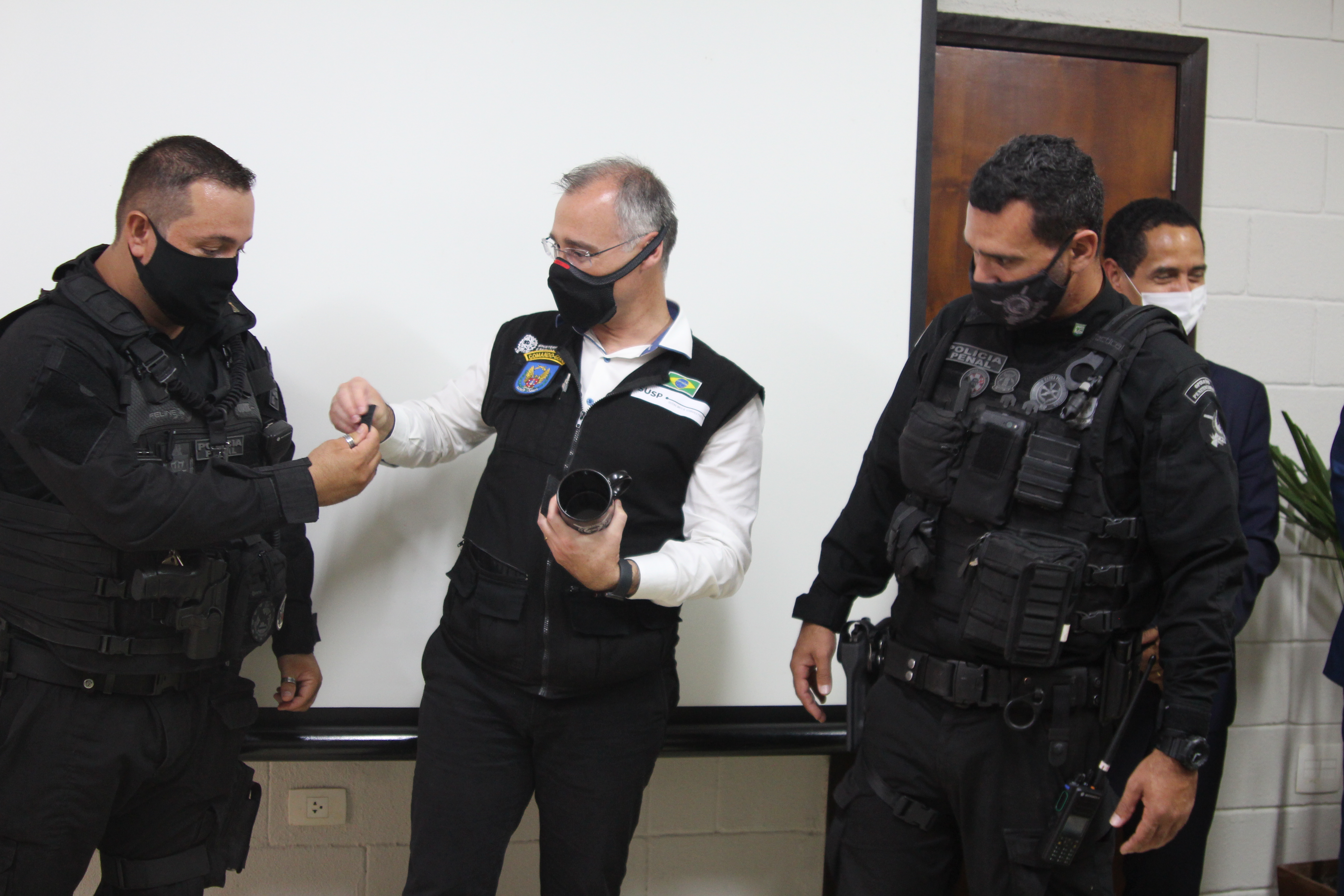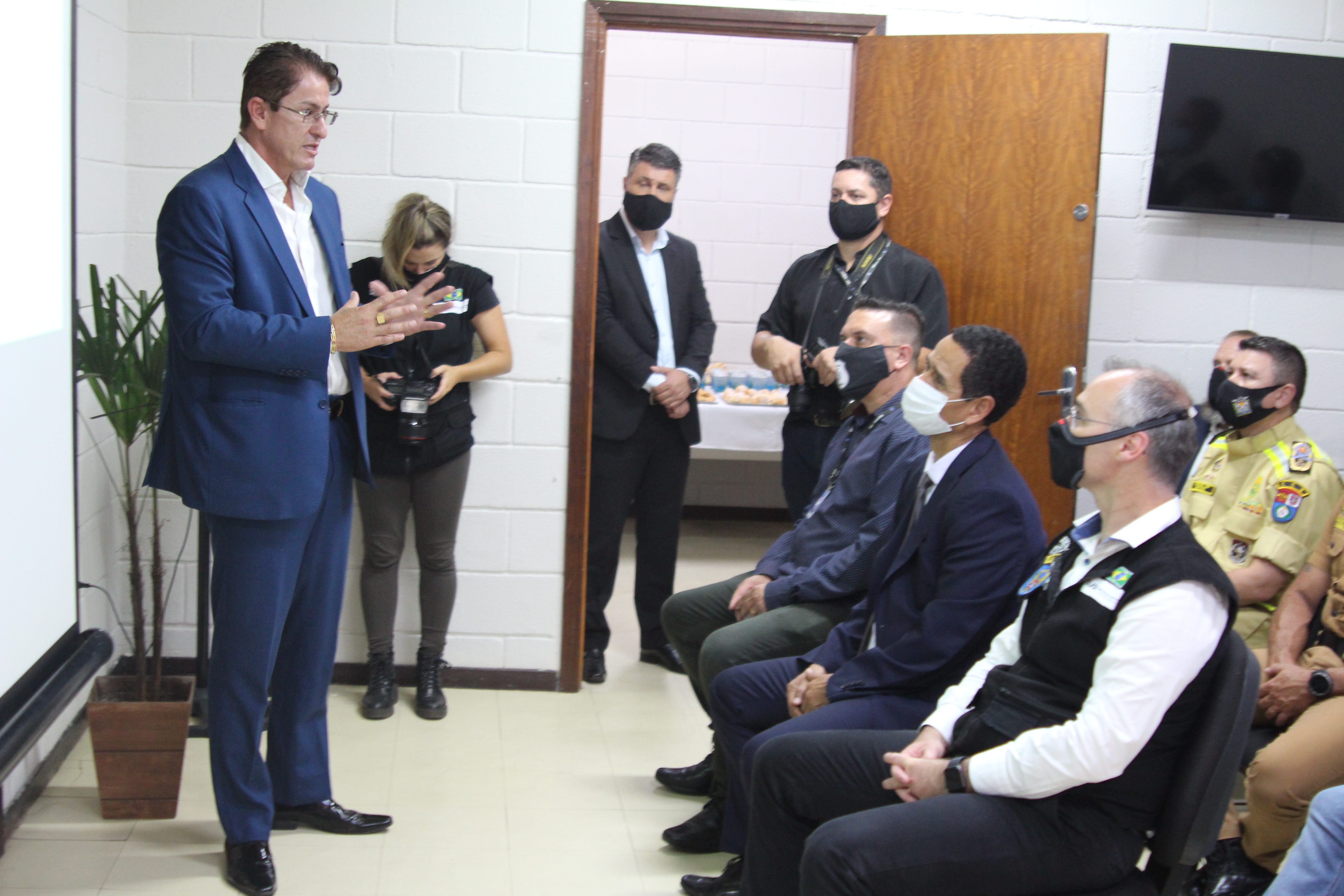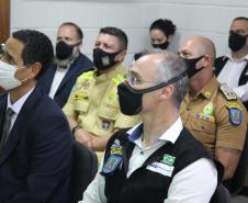 PRESENÇAS - Estiveram no evento o deputado federal Sargento Fahur, o delegado-geral da Polícia Civil, Silvio Rockembach; o comandante do Corpo de Bombeiros, coronel Gerson Gross; o diretor-geral da Polícia Científica, Luiz Rodrigo Grochocki; o comandante-geral da PM, coronel Hudson Leôncio Teixeira, o diretor do Departamento de Inteligência do Paraná, Sivanei de Almeida Gomes, o vice-diretor do Depen, Luiz Francisco da Silveira, o coordenador regional do Depen, em Curitiba, Jeferson Walkiu, o assessor de segurança do Depen, Alisson Andrade, o coordenador regional do Depen, em Ponta Grossa, Maurício Ferracini, o diretor da Casa de Custódia de São José dos Pinhais, Samuel Moreira e o chefe do Setor de Produção e Desenvolvimento (Seprod) do Depen do Paraná, Boanerges Silvestre Boeno Filho.
