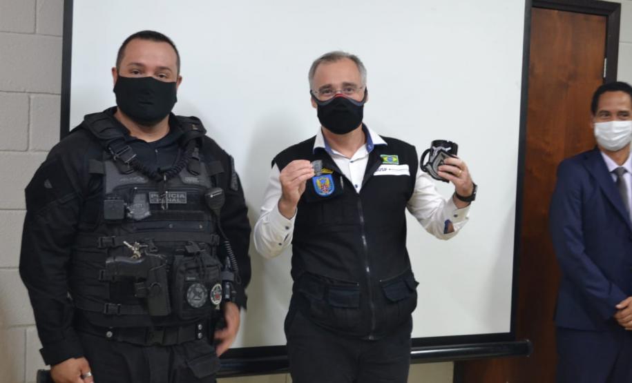 HONRA AO MÉRITO - O ministro André Mendonça entregou ainda o Diploma de Honra ao Mérito da Segurança Pública e Defesa Social a profissionais de segurança pública do Paraná que se destacaram no cumprimento de suas funções. Receberam a honraria pelo Departamento Penitenciário do Estado o coordenador regional do Depen em Londrina, Reginaldo Peixoto, e a esposa do agente penitenciário Thiago Borges de Carvalho, morto em serviço em 2016.