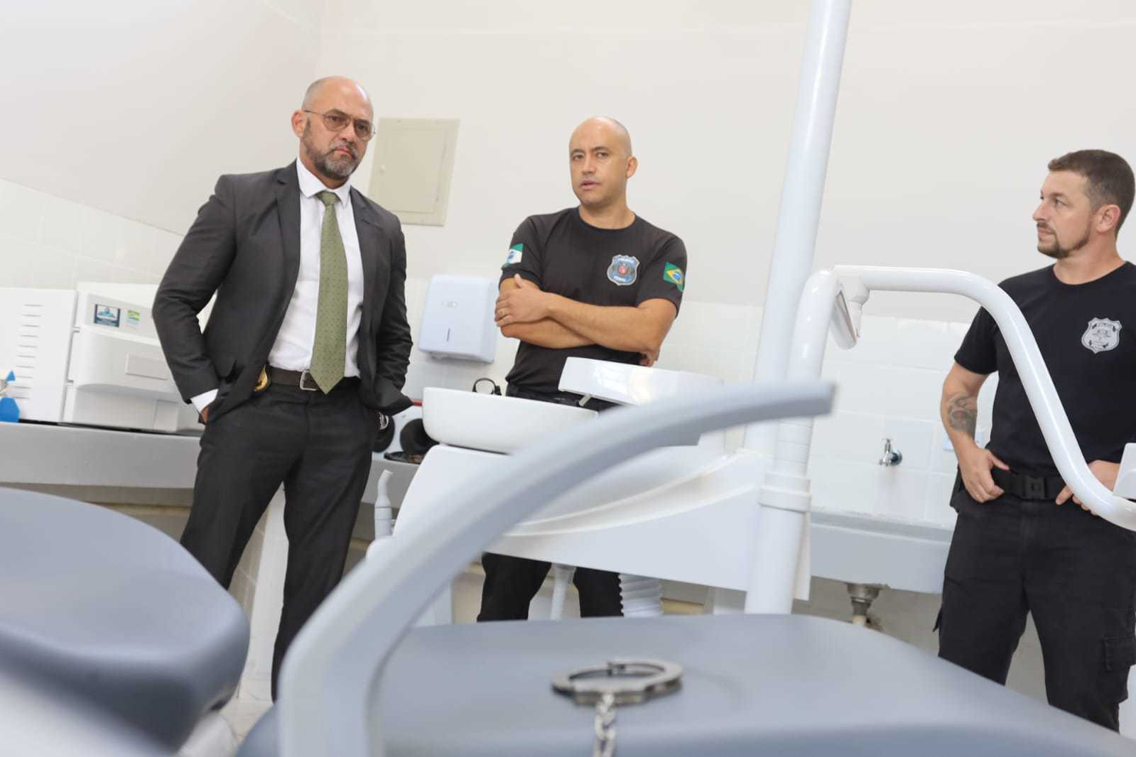 O secretário da Segurança Pública, Hudson Leôncio Teixeira, participou do ato de entrega e destacou a importância de os servidores da Penitenciária Central do Estado e das demais unidades buscarem melhorias que atendam de maneira mais eficaz as demandas diárias. “A reforma na estrutura de controle de presos traz mais segurança para o servidor, otimiza o tempo para o desempenho das funções. A instrumentalização dos procedimentos reduz o risco de falha humana”, disse o secretário.