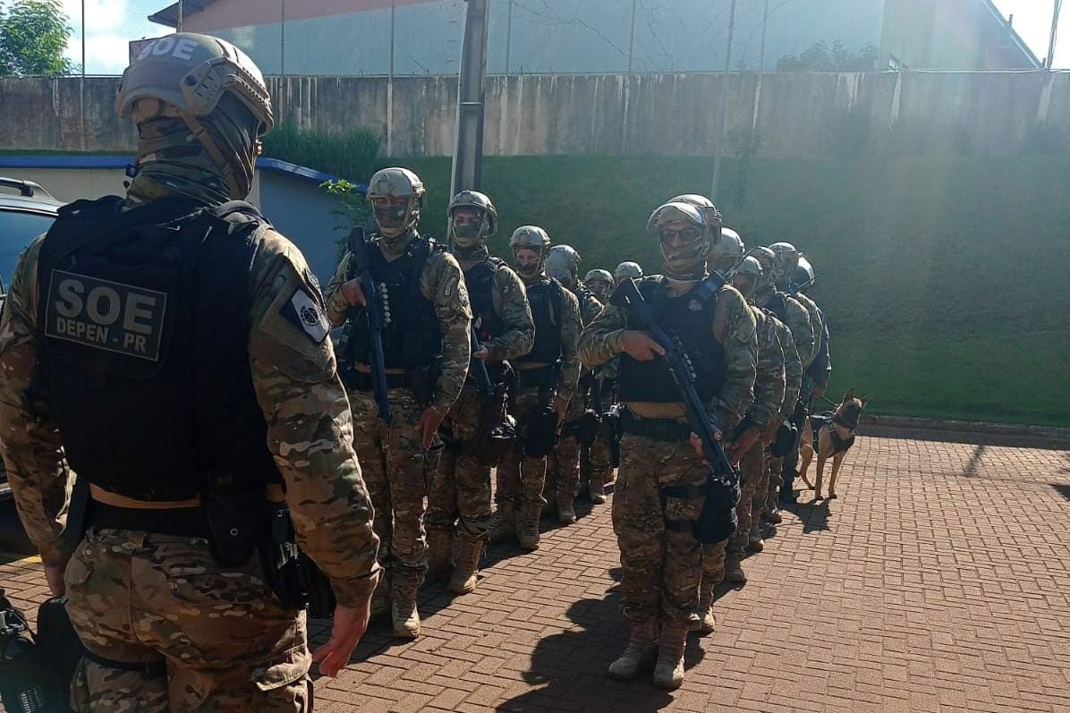 Também atuaram 133 monitores de ressocialização prisional (MRP), seis policiais militares, quatro policiais civis e um policial penal federal. A operação ainda contou com o apoio de dois cães da Polícia Militar do Paraná.
