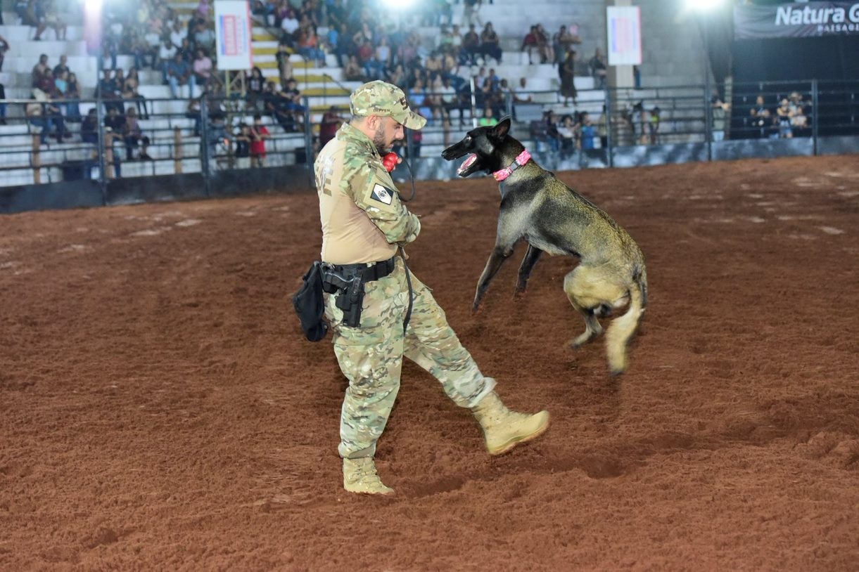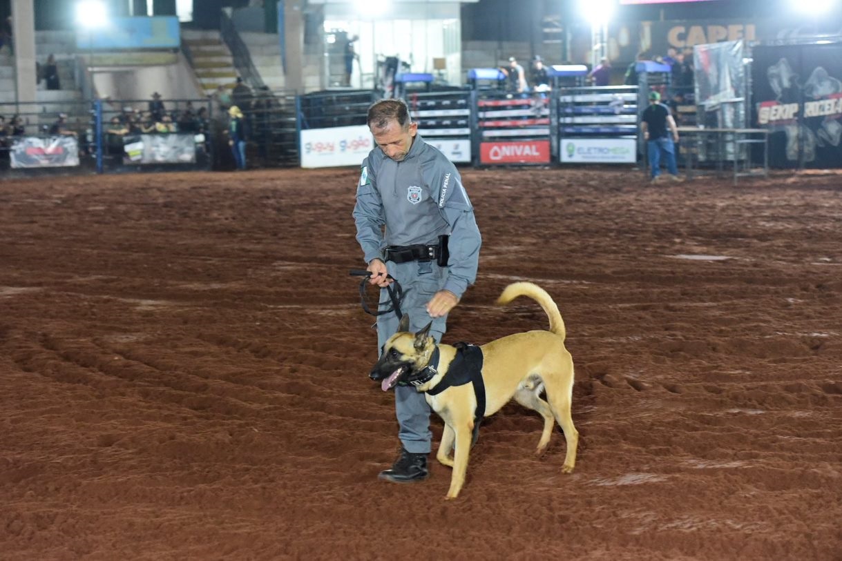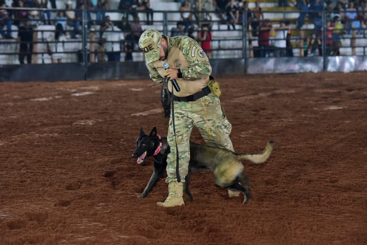 Um dos momentos marcantes da festa foi a participação do Setor de Operações Especiais com uso de cães policiais (SOE/K9) na abertura do rodeio. Os policiais penais Weslei de Souza Mattos e Osias Dias do Prado, conduziram os cães Glock e Segen em uma apresentação demonstrando as habilidades dos caninos em simulações de possíveis ocorrências, bem como algumas habilidades de entretenimento para o público.