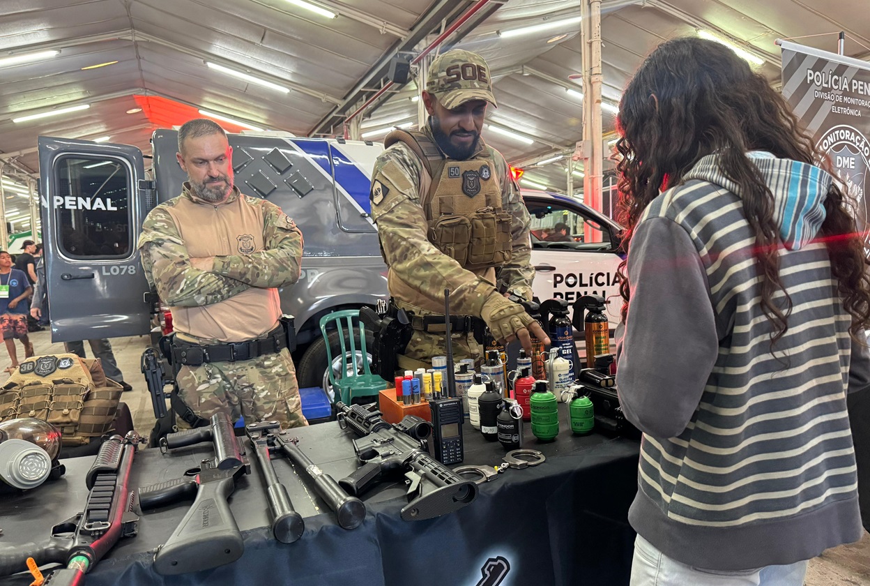Durante os dois dias, muitas pessoas, grande parte, estudantes, passaram pelo estande da PPPR e tiveram a oportunidade de interagir com os policiais penais, que apresentaram parte do trabalho desenvolvido no dia a dia. No espaço, os visitantes puderam conhecer os equipamentos e armamentos utilizados pelos setores operacionais, acompanhar de perto o funcionamento da monitoração eletrônica por meio de tornozeleira, além de explorar as viaturas destinadas ao transporte de pessoas privadas de liberdade (PPL).