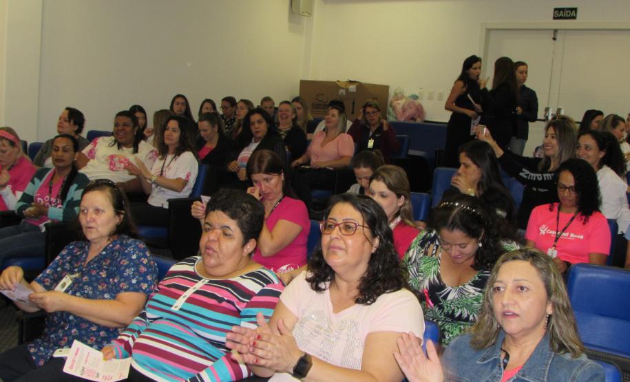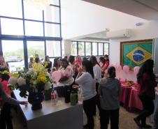 A regional de Foz do Iguaçu, organizou um café da manhã com palestra e sorteio de brindes para as servidoras. Durante o evento, que aconteceu nesta na terça-feira (22/10), a médica e coordenadora do Programa Saúde da Mulher, Cristiane Magdalena Lopes Pereira, falou sobre a importância da prevenção, do diagnóstico e do tratamento do câncer de mama.