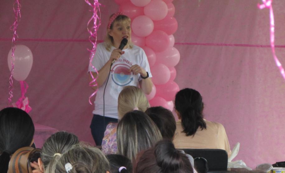 Em seguida, a diretora da Legião Feminina de Combate ao Câncer (LFCC), do Hospital Uopeccan, Iria Maria Garmatz, falou sobre sobre cuidados e prevenção ao câncer de mama. Na ocasião, que contou com a participação de cerca de 60 pessoas, o diretor da PIC, Leonardo Henrique Dondoni fez a entrega, de 70 almofadas em formato de coração e 25 naninhas para a diretora da LFCC, Iria Maria Garmatz.