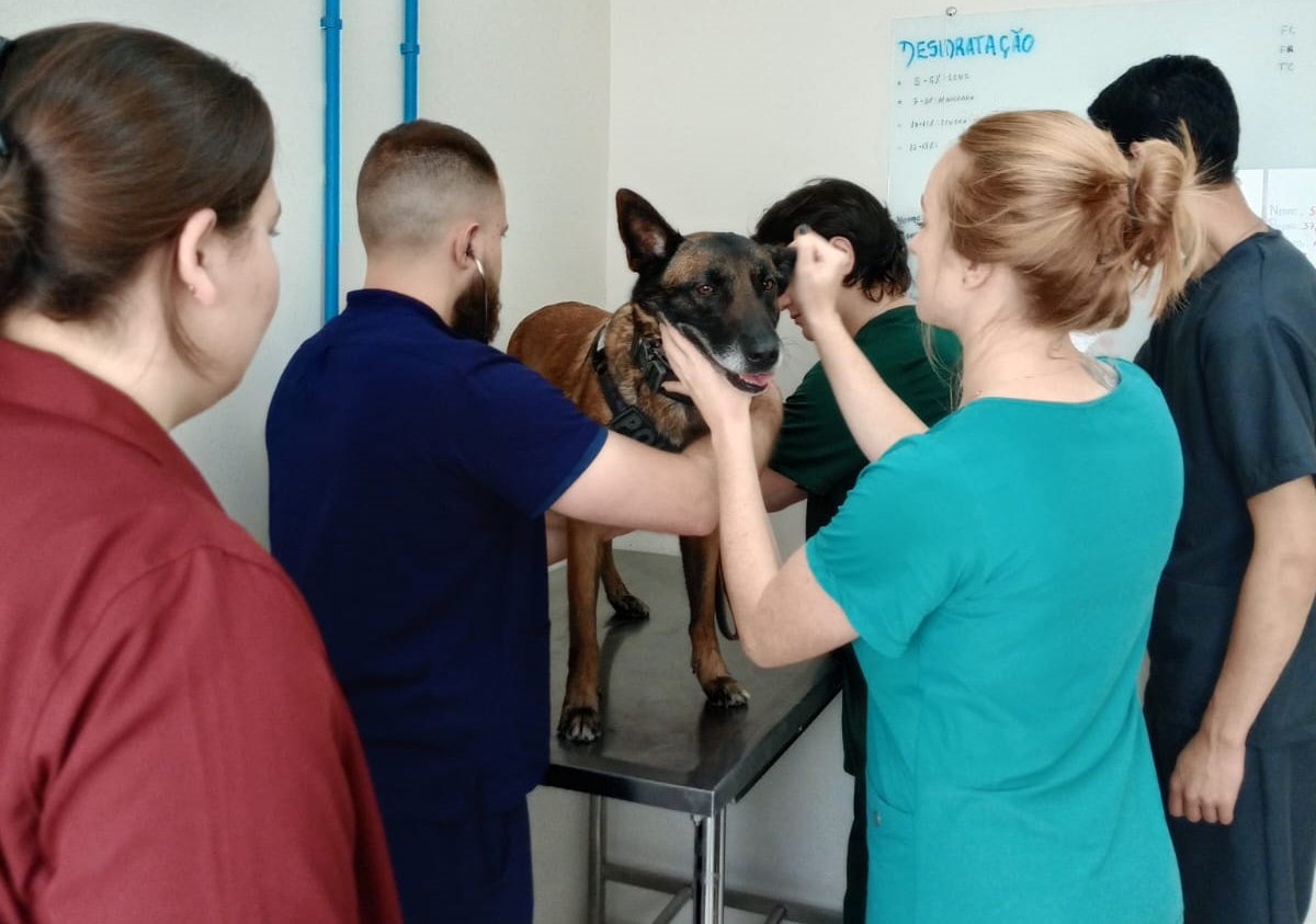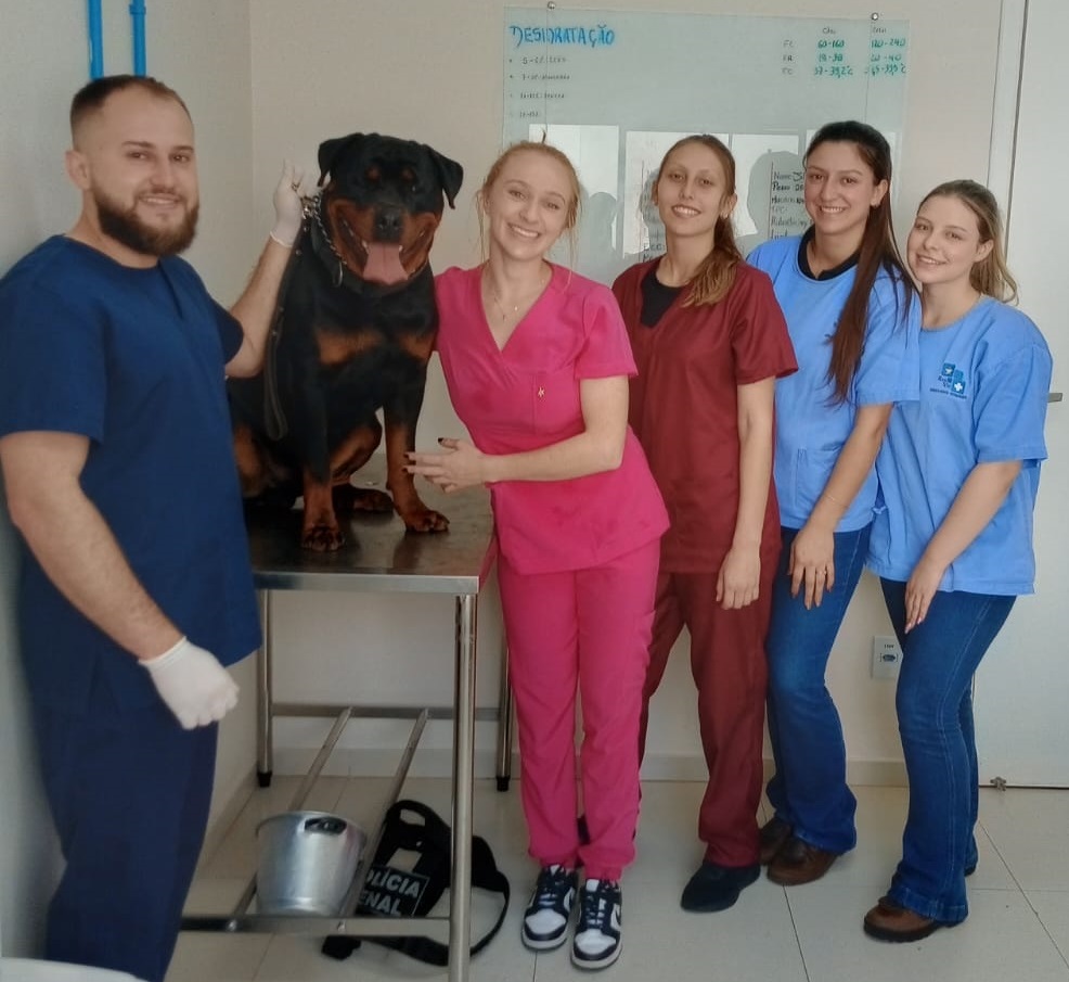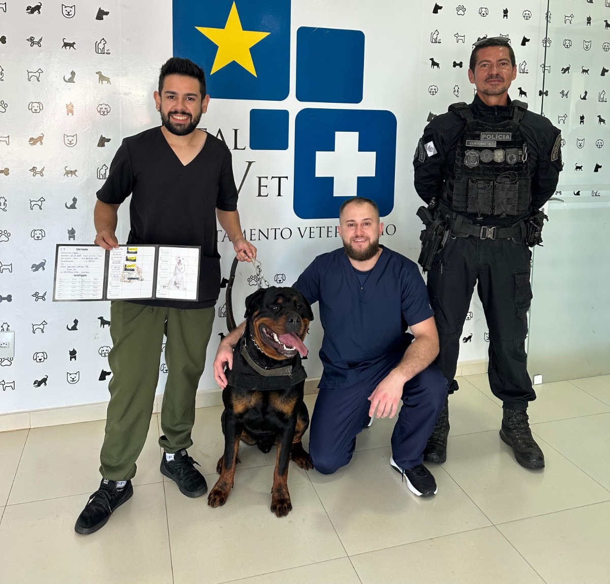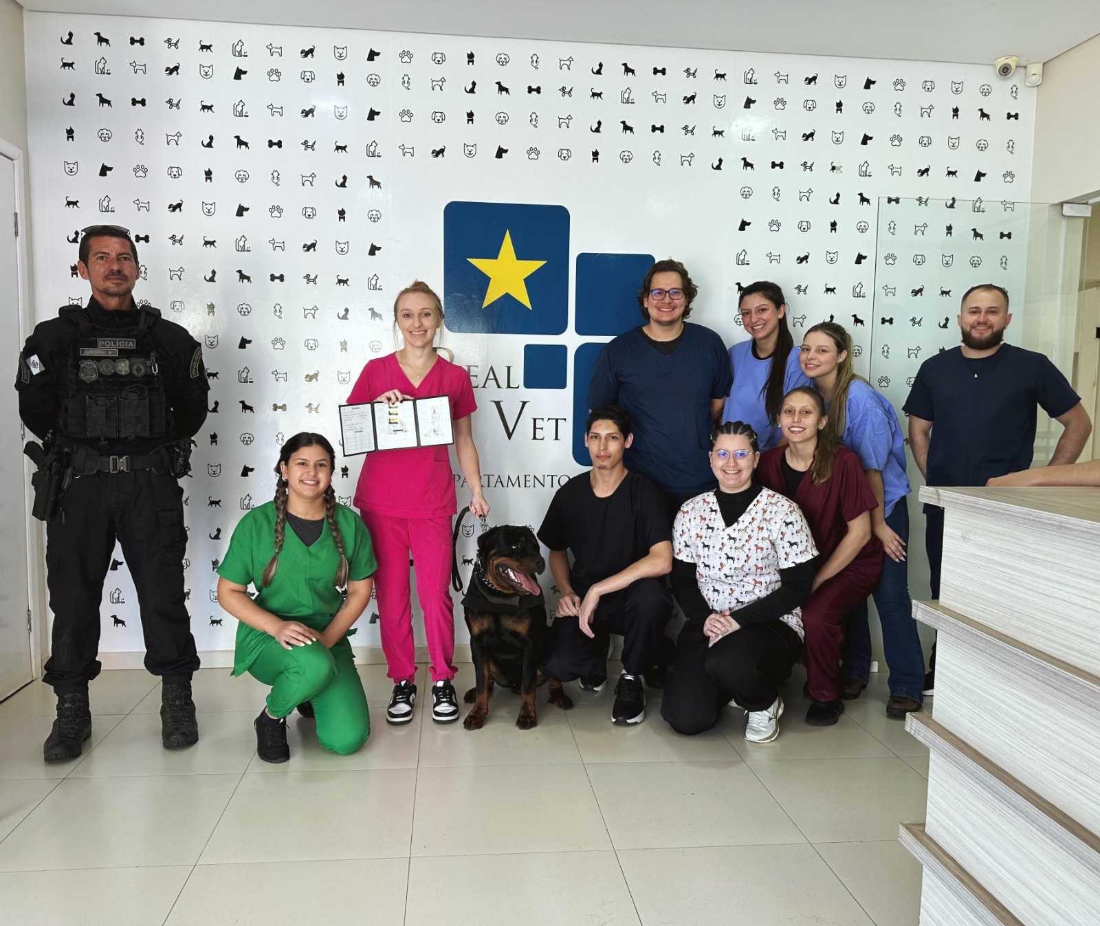 A Polícia Penal do Paraná (PPPR) realizou uma parceria com o curso de Medicina Veterinária do Centro Universitário Campo Real, em Guarapuava, para acompanhamento e atendimento clínico dos cães que integram o canil institucional da PPPR. Os cães Astrid, Thor, Hanna e Xerife, que desempenham papel fundamental nas atividades operacionais e de segurança da PPPR, recebem periodicamente atendimentos clínicos, exames laboratoriais e radiológicos, realizados pelos acadêmicos sob a supervisão do docente Diego Sinigaglia Pase, médico veterinário e professor no Departamento Veterinário Real Vet. Também foram definidas dosagens adequadas de nutrição e o tipo de ração ideal para cada etapa, de acordo com o peso e as análises clínicas de cada animal, o que contribui diretamente para o desempenho físico e o equilíbrio nutricional dos cães policiais.