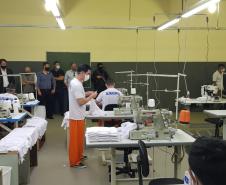 A Penitenciária Central do Estado – Unidade de Segurança (PCE-US), localizada em Piraquara, na Região Metropolitana de Curitiba, inaugurou um novo canteiro de trabalho nesta quinta-feira (29/10). O espaço será destinado à confecção de uniformes que serão produzidos com mão de obra prisional.