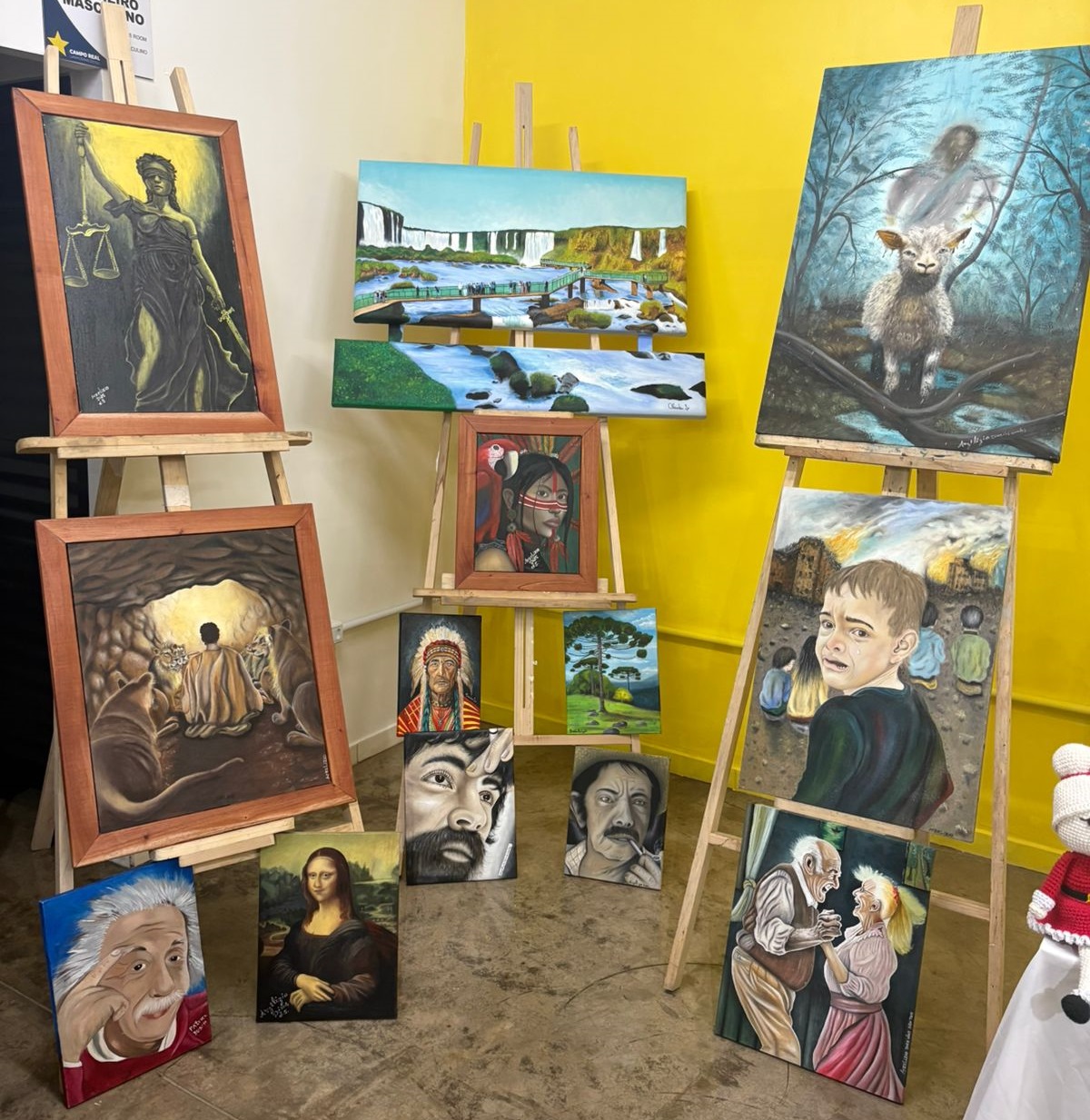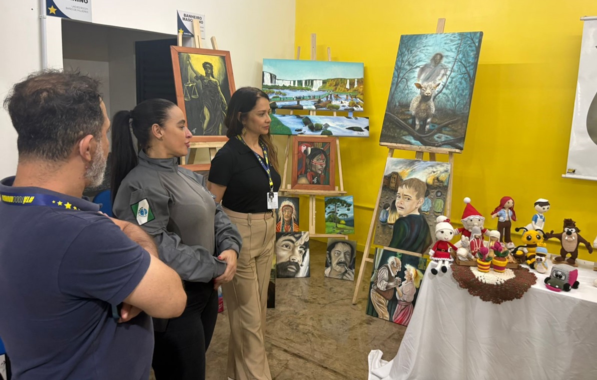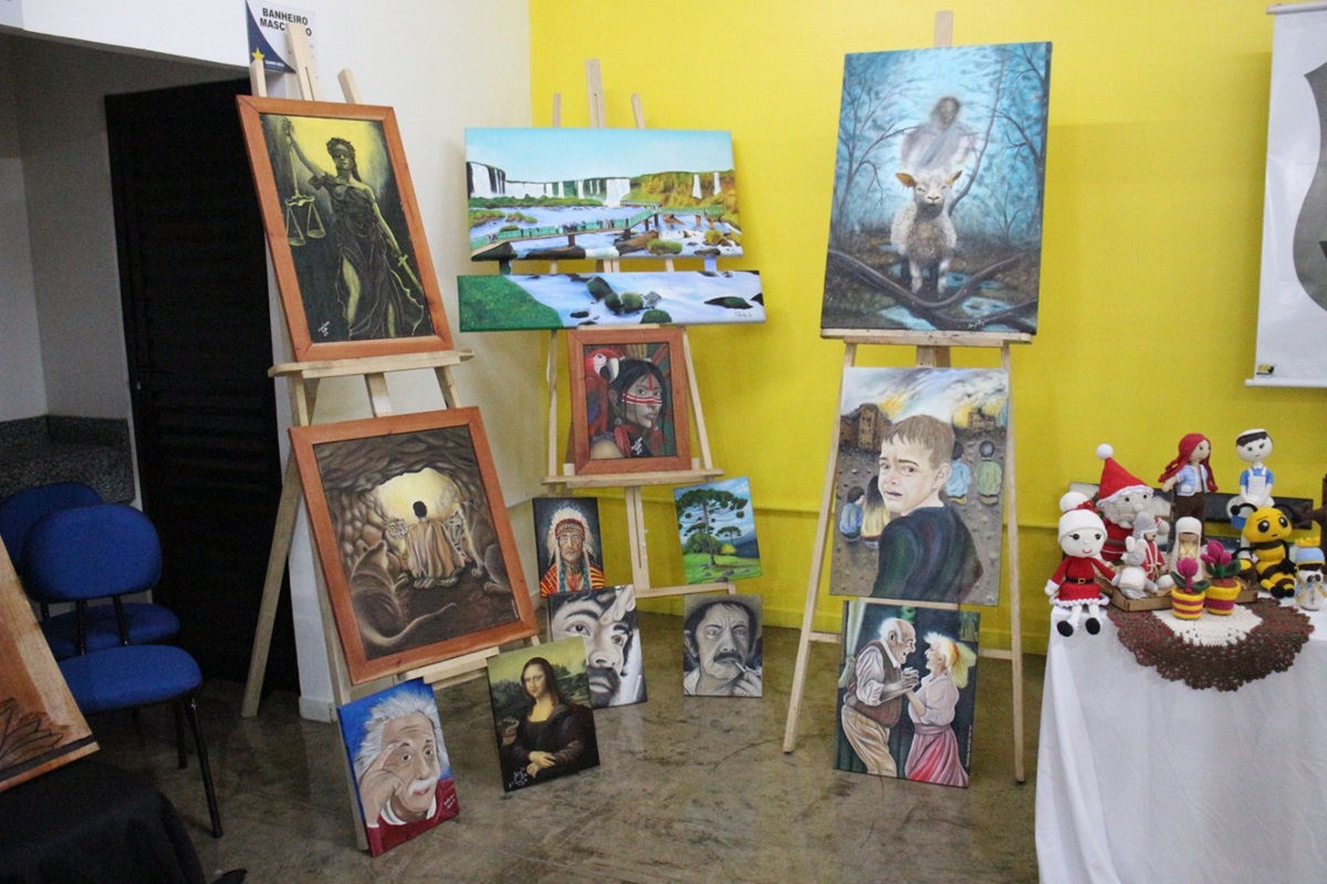 Pinturas e artesanatos feitos por apenados são expostos em evento universitário, em Laranjeiras do Sul 30/10/2025 - 15:59