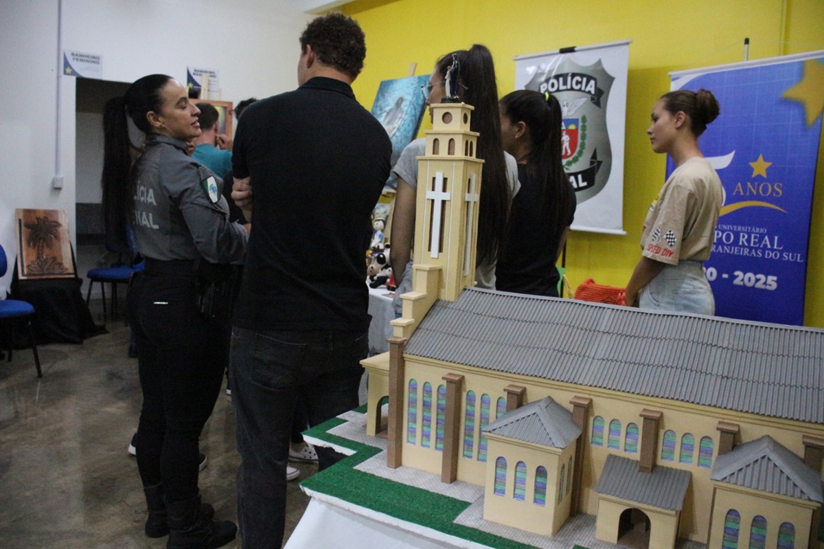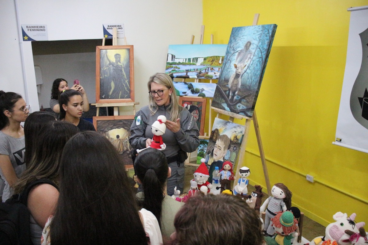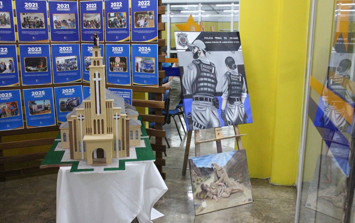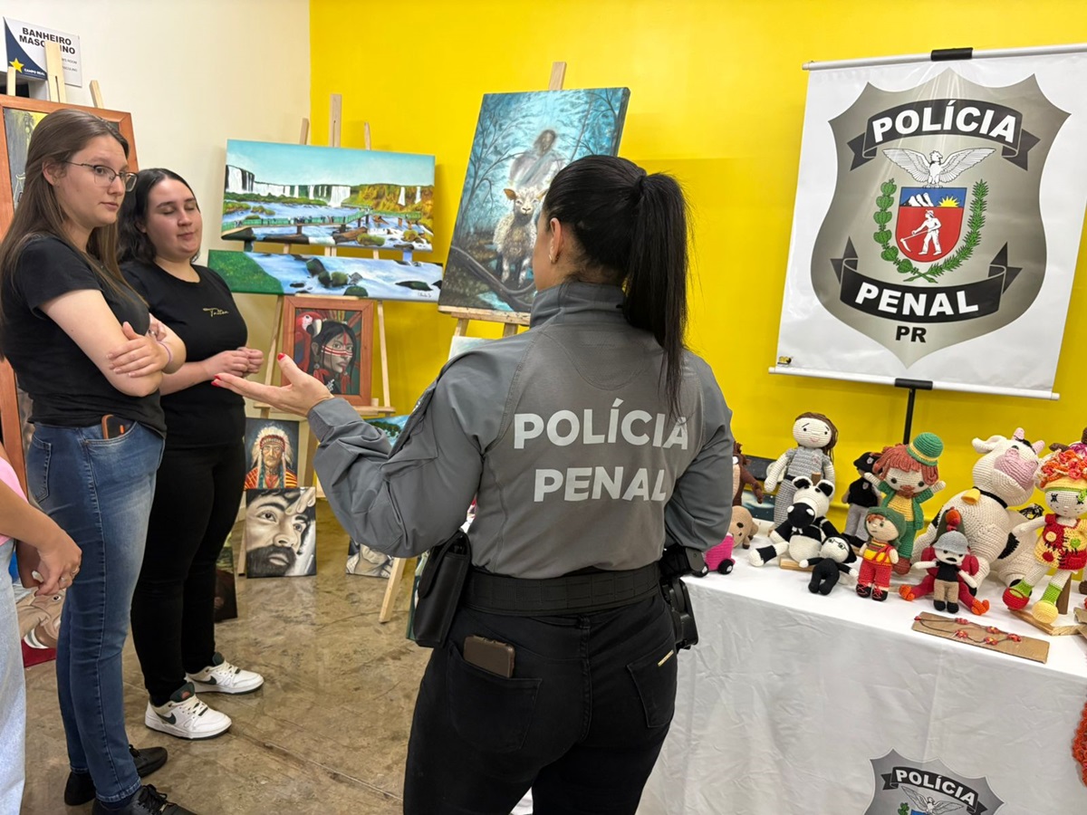 A Polícia Penal do Paraná (PPPR) está participando da Semana Cultural do Centro Universitário Campo Real, em Laranjeiras do Sul, entre os dias 27 e 31 de outubro, com uma exposição especial de telas e artesanatos produzidos por pessoas privadas de liberdade da Cadeia Pública de Laranjeiras do Sul, a convite da instituição de ensino.