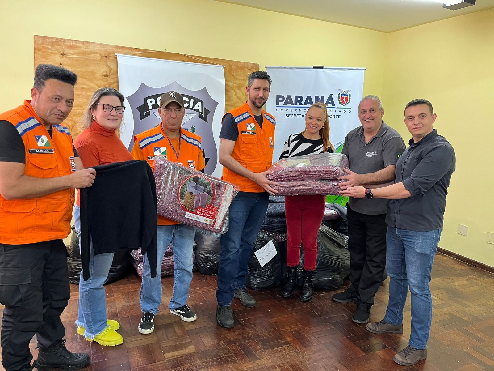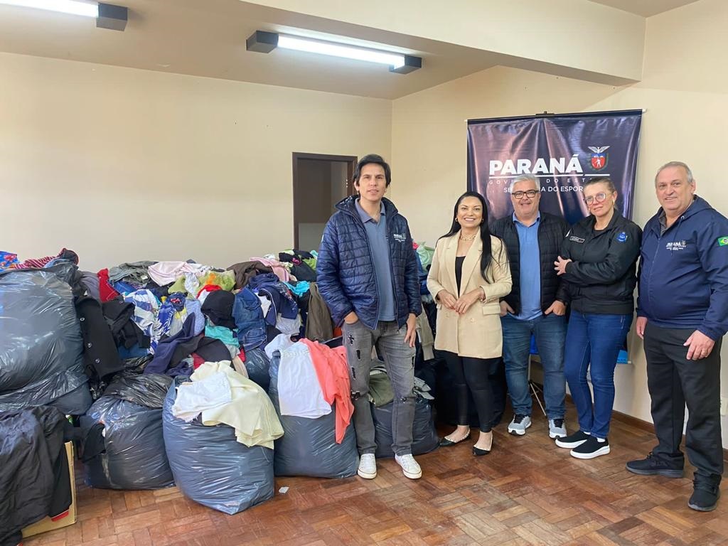 Durante a semana, as doações foram entregues pelo coordenador regional de Guarapuava, Marlon Rafael Picioni, e pelo chefe regional do Paraná Esporte, Edson Pereira de Andrade. Os itens foram repassados para a Secretaria Elenita Luiza Lodi de Assistência Social do Município de Guarapuava e posteriormente direcionados a Defesa Civil do município. Na ocasião, a entrega contou com a presença da primeira-dama municipal, Katriane Mila, e da chefe do Núcleo Regional da Secretaria de Desenvolvimento Social e Família, Rosangela dos Santos Virmond.