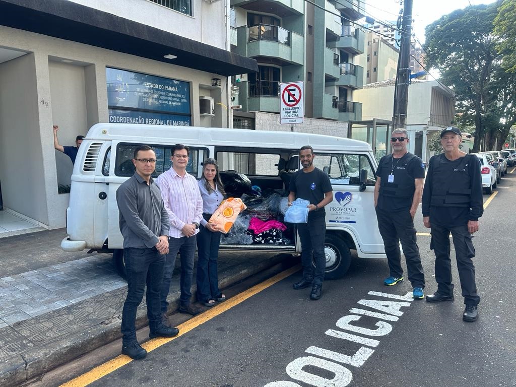 Já em Maringá, foram coletadas 1.074 peças de roupas de frio e cobertores nas unidades prisionais da regional e também através de uma ação conjunta entre a Polícia Penal e a Justiça Federal voltada às pessoas em cumprimento de pena de Prestação de Serviço à Comunidade. Os indivíduos com pena alternativa que doassem um kit de cobertores, calças e blusas possuíam o benefício de diminuição de 30 horas de prestação de serviço à comunidade. As peças arrecadadas foram entregues ao Programa do Voluntariado Maringaense (Provopar).