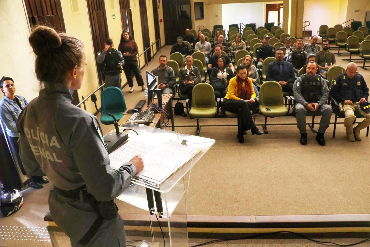 Nesta sexta-feira (16), a PPPR realizou uma rodada de palestras no auditório da Secretaria de Estado da Segurança Pública (SESP-PR), com foco em segurança no trânsito. O evento contou com palestras ministradas pela diretora da Escola Pública de Trânsito de Curitiba, Doutora Melissa Puertas Sampaio; pelo policial rodoviário federal Paulo de Tarso Costa Queiroz; e também pelos policiais penais e idealizadores do evento, Anderson Medina e Paulo Henrique Tissi Munhoz Duarte.