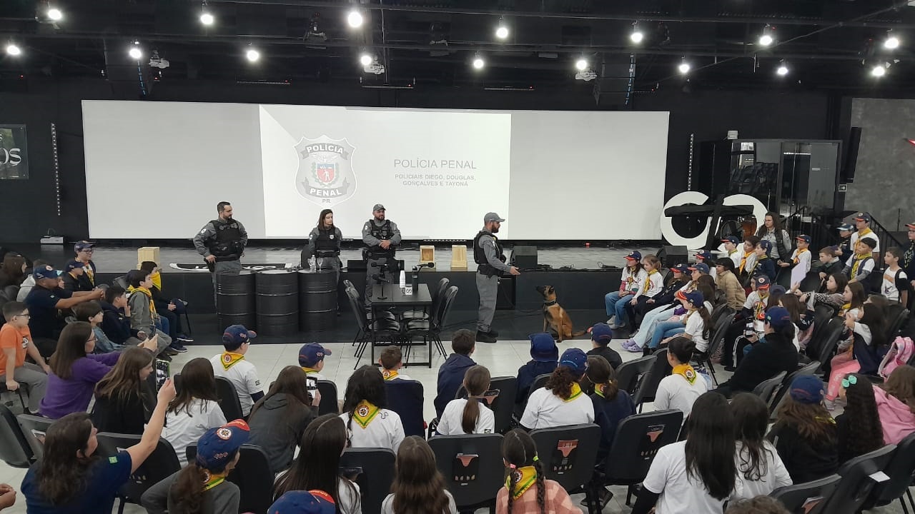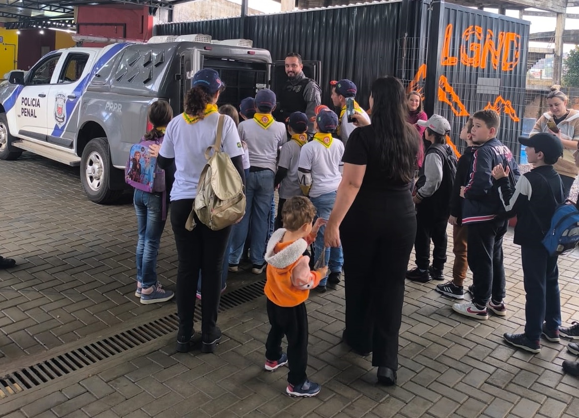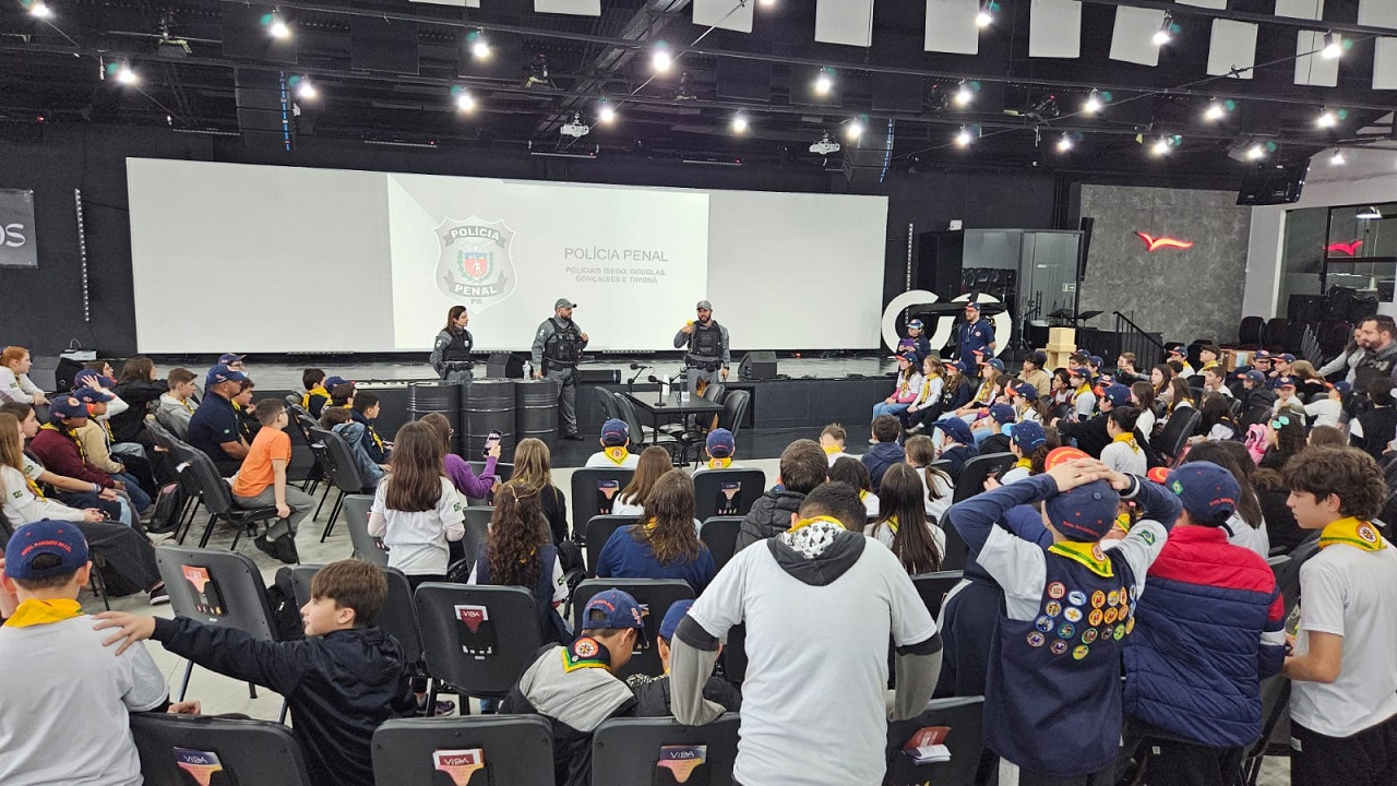 No último sábado (28), policiais penais da Regional Administrativa da Polícia Penal do Paraná (PPPR) de Francisco Beltrão participaram de uma atividade educativa com aproximadamente 120 crianças da Comunidade Cristã Vida, em Pato Branco, no sudoeste do estado. A participação ocorreu a convite do Destacamento 45 dos Exploradores do Rei Brasil, um ministério da Igreja Assembleia de Deus, destinado a crianças e adolescentes de 5 a 17 anos. O programa, também conhecido como Royal Rangers no Brasil, tem como objetivo desenvolver caráter, cidadania e autoconfiança nos jovens. A ação com participação da PPPR fez parte da programação do mérito de forças policiais, voltada aos grupos “Descobridores” (8 a 10 anos) e “Aventureiros” (11 a 13 anos).