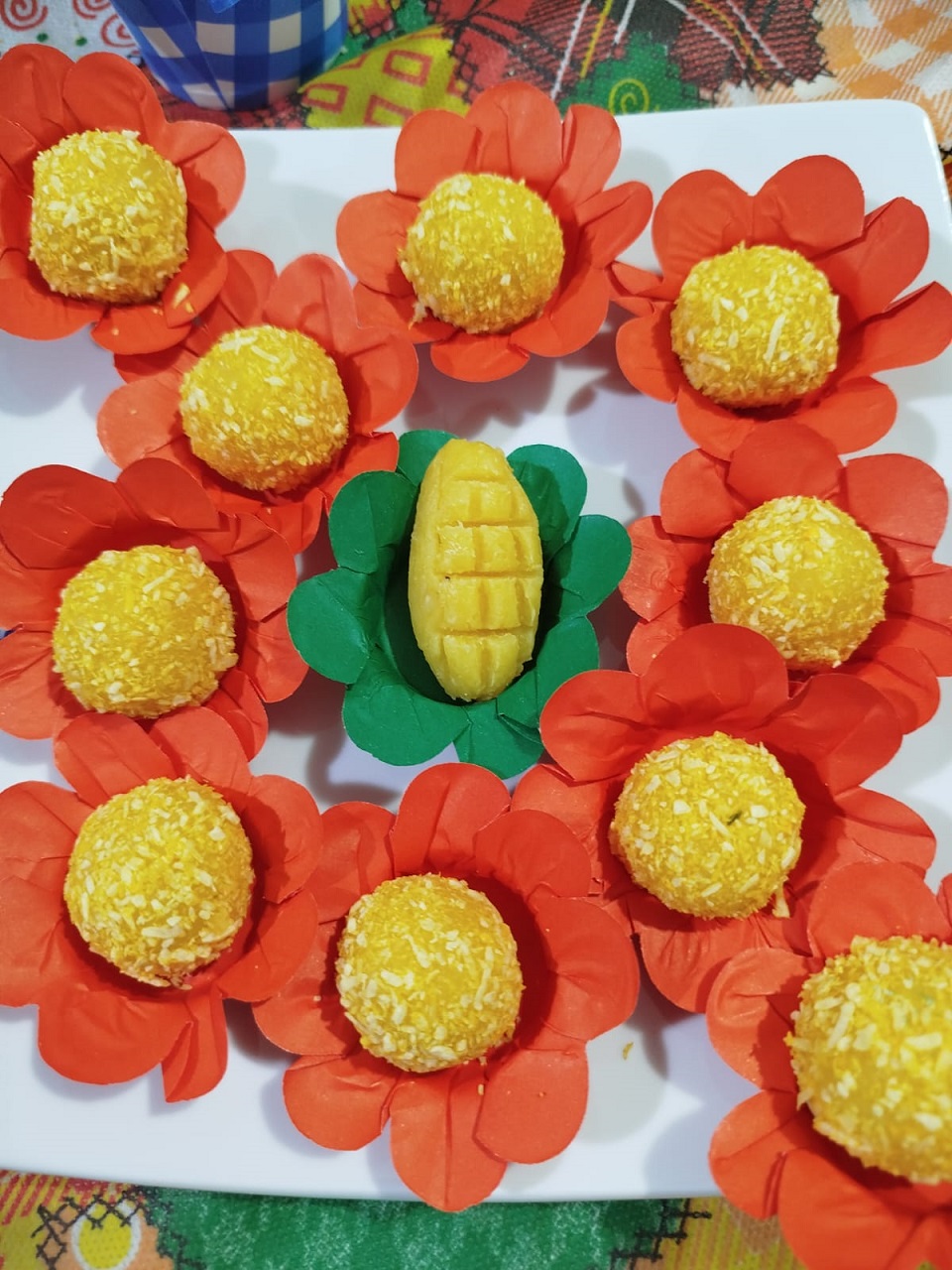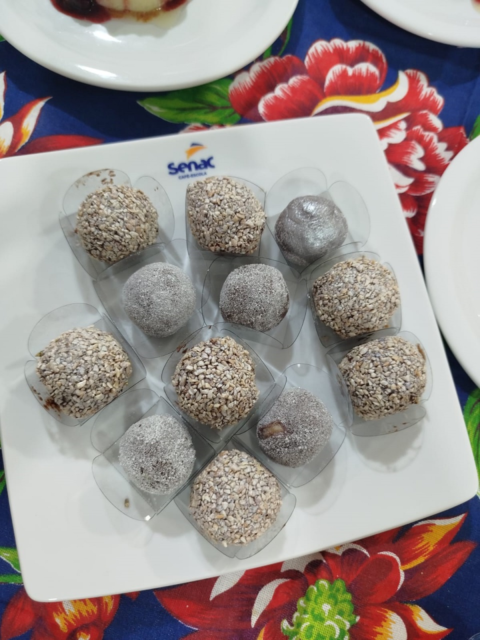 Na última aula do curso, da turma que formou-se no último dia 27, foram produzidos os seguintes doces: paçoca de corte; queijadinha; bolo pamonha; brigadeiro de milho e coco; gelado de abacaxi; pudim de chocolate branco com frutas vermelhas; brigadeiro de chocolate com maçã; bolo gelado de maracujá; brigadeiro “Dois Amores”; cupcake de chocolate; bolo no pote com ganache e palha italiana.