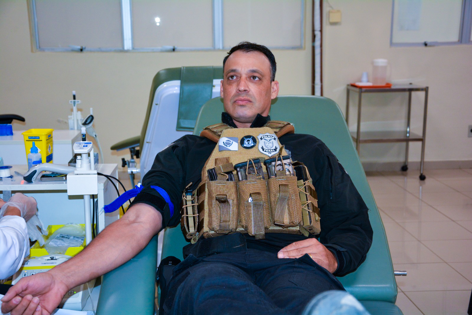 Elizandro Sandrini Marconcin, chefe da base SOE de Foz do Iguaçu, é doador de sangue há mais de 30 anos e conta que a sensação de contribuir para salvar vidas é incomparável. Ele destaca que a campanha foi utilizada como um projeto-piloto para incentivar os colegas de farda a se envolverem mais em iniciativas humanitárias: “Além de comemorarmos nossos feitos como unidade operacional, enxergamos a necessidade de retribuir à comunidade de uma forma significativa. Entendemos que os policiais penais desempenham um papel fundamental na segurança pública, mas acreditamos que a verdadeira essência do serviço público é o compromisso com o bem-estar da comunidade a que servimos. A doação de sangue não é apenas um ato de generosidade, mas também uma extensão de nosso juramento de proteger e servir”.