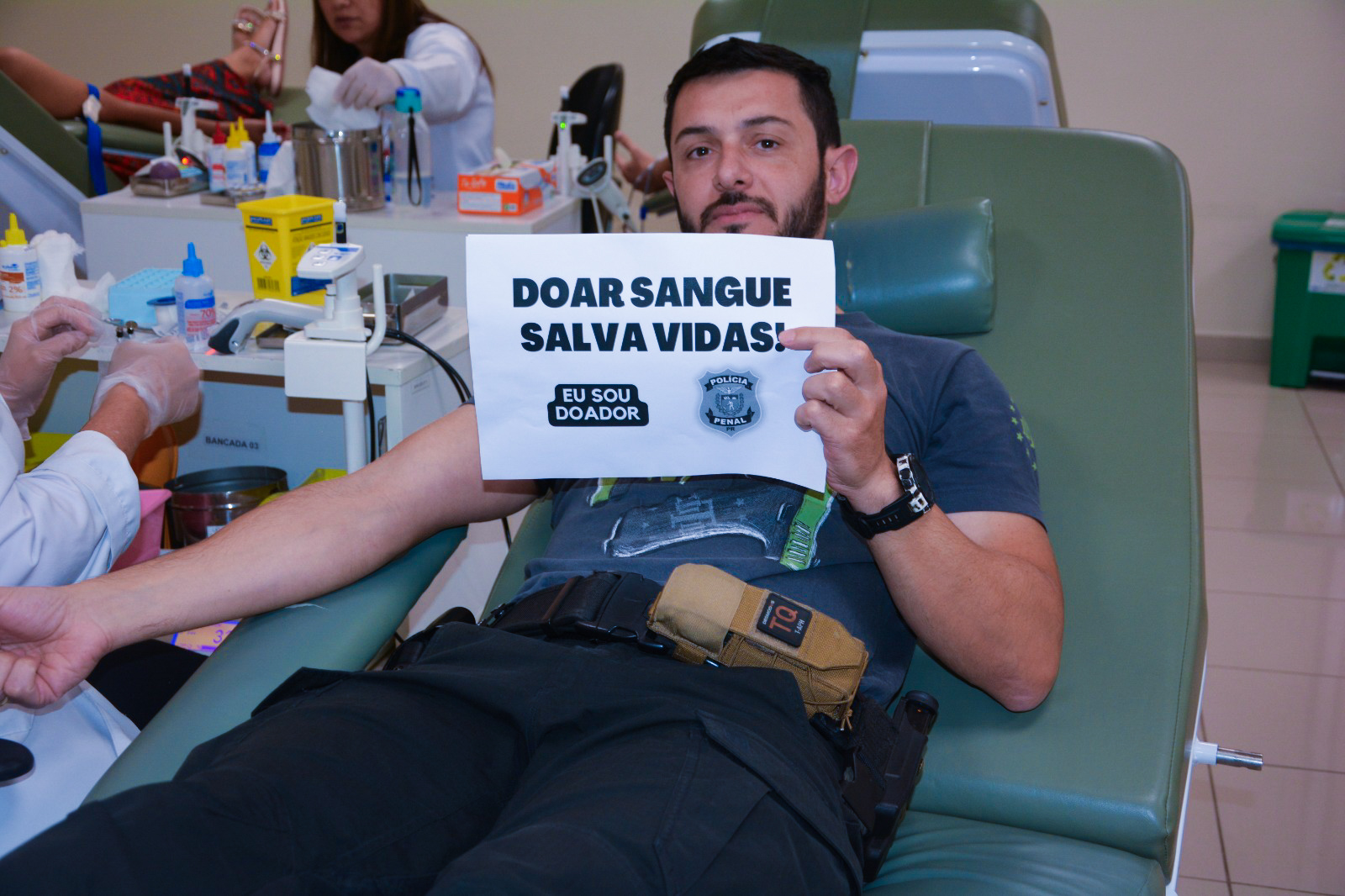 Nos dias 13 e 14 de dezembro, a Polícia Penal do Paraná (PPPR), através de uma ação integrada entre as regionais administrativas de Curitiba, Londrina, Cascavel e Foz do Iguaçu, promoveu uma doação de sangue coletiva em todo o estado, com a participação de 56 servidores.