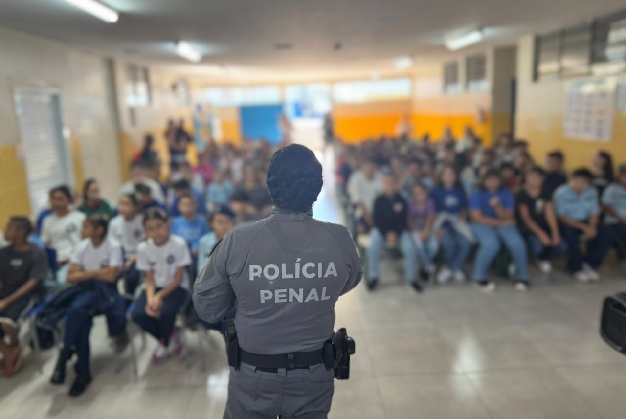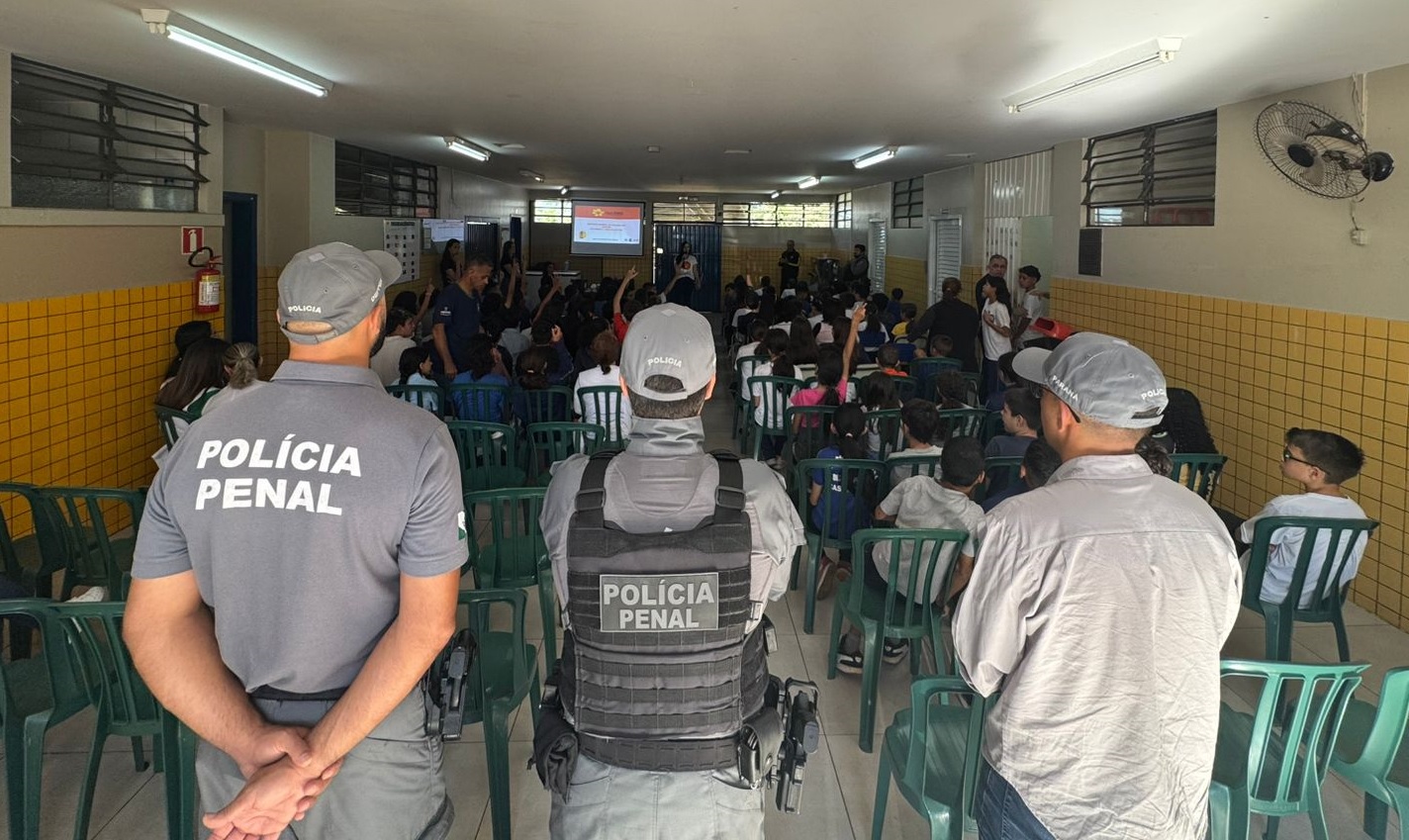 Além da palestra, os estudantes receberam pelúcias confeccionadas por pessoas privadas de liberdade, por meio de projetos desenvolvidos no sistema prisional. A ação também contou com uma exposição de viaturas da Polícia Penal, que foram apresentadas aos alunos no pátio da escola, despertando o interesse e proporcionando um momento de integração.