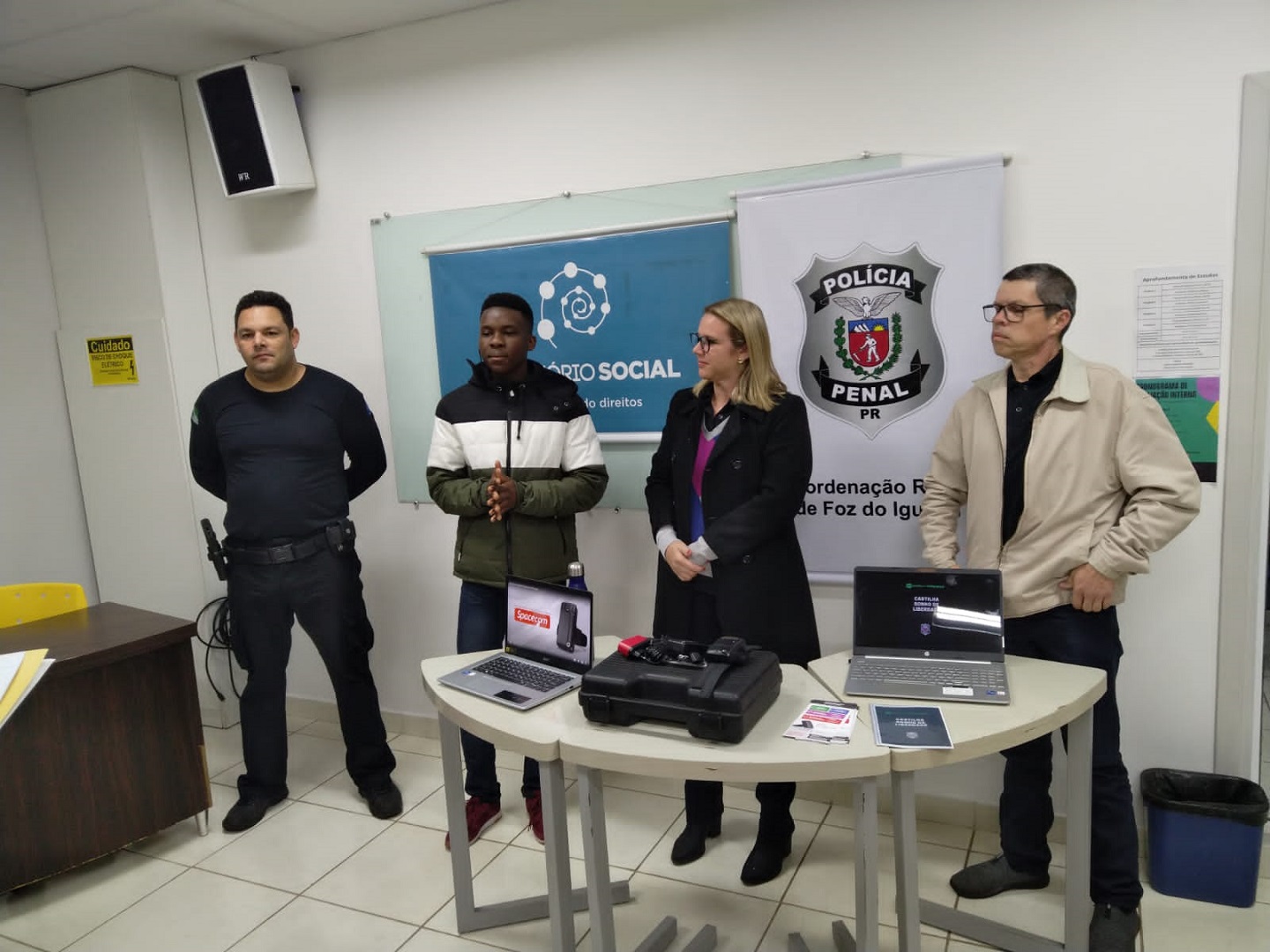 A participação no Festival de Inovação da Uniamérica por parte da Polícia Penal contou com a presença de Policiais Penais do Posto Avançado de Monitoração da Região 9 e do Escritório Social, sendo estes os dois setores da Polícia Penal que participaram ativamente do Projeto, contribuindo para o desenvolvimento do material impresso que é entregue para o PPL quando da participação.