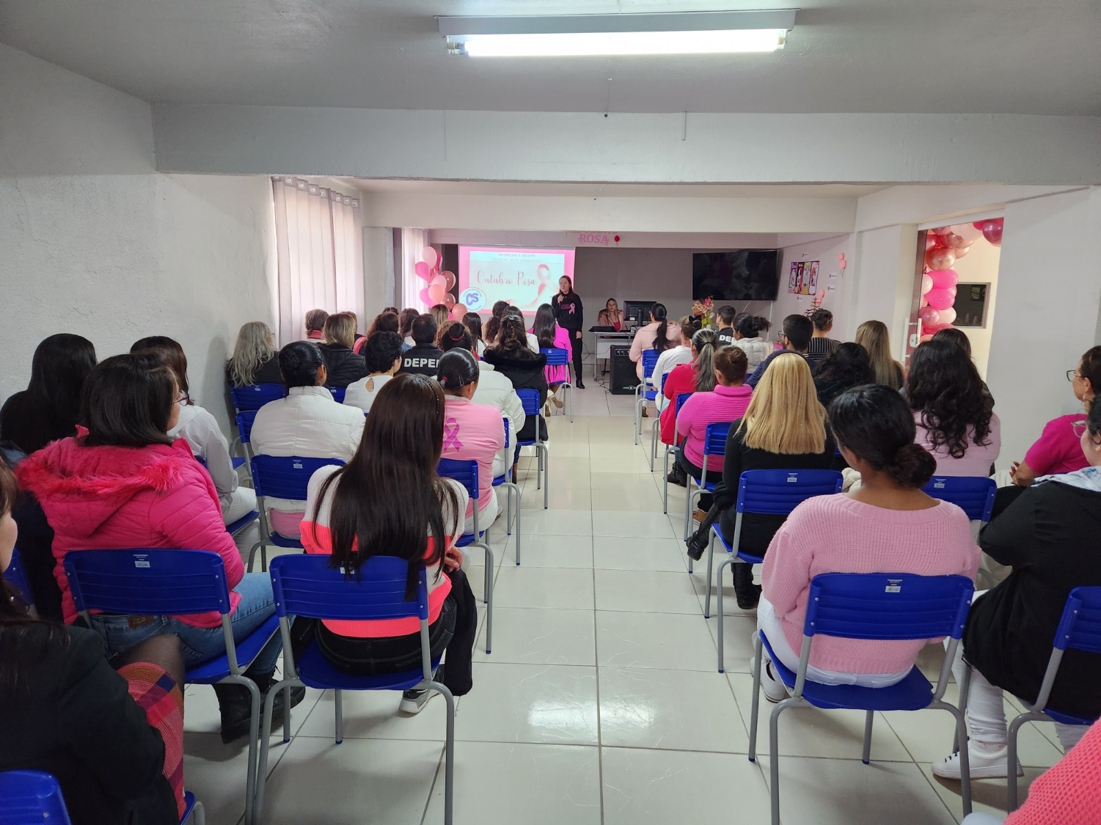 O evento foi destinado a todas as servidoras da regional administrativa de Foz do Iguaçu, como policiais penais, agentes profissionais, Professoras, Monitoras de Ressocialização Prisional, Assistentes e Técnicas Administrativas, Estagiárias e residentes das mais variadas áreas. A palestra foi apresentada pelas profissionais de saúde, a Enfermeira Bárbara Dornelles e a Psicóloga Alessandra Gromowski, acompanhadas das residentes técnicas da 9a Regional de Saúde, e além das informações, dados e orientações, apresentou às mulheres da polícia penal os cuidados relativos ao autoexame das mamas, os protocolos clínicos a serem seguidos, a sintomatologia da doença, os locais de tratamento, e a importância do autocuidado.