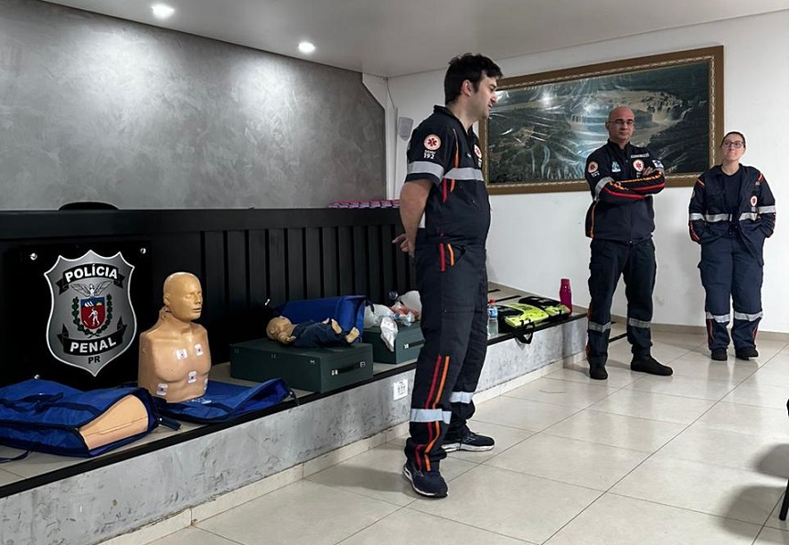 Nesta semana, 22 servidores penitenciários de Foz do Iguaçu participaram do curso de Suporte Básico de Vida (SBV), ministrado por enfermeiros do Serviço de Atendimento Móvel de Urgência (SAMU). A capacitação teve o objetivo de habilitar os alunos na identificação de situações de emergência e realização de primeiros socorros em unidades prisionais.