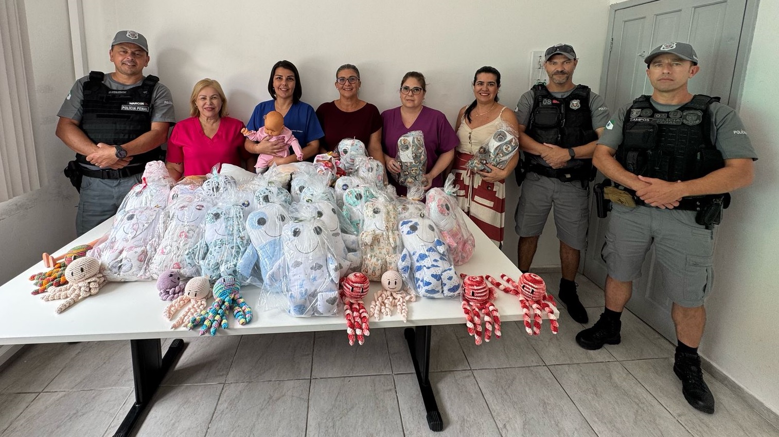 Como parte das ações desenvolvidas durante a programação do Verão Maior Paraná, policiais penais que atuam no litoral, realizaram nesta sexta-feira (14), uma visita especial à Maternidade de Guaratuba, no litoral do estado. Na ocasião, foram entregues naninhas – travesseiros em formato de bonecos – confeccionadas dentro do sistema prisional paranaense, beneficiando crianças em internamento ou que aguardavam atendimento médico. Além disso, três crianças nasceram nesta data e receberam, junto com as naninhas, polvinhos de amigurumi feitos em crochê.