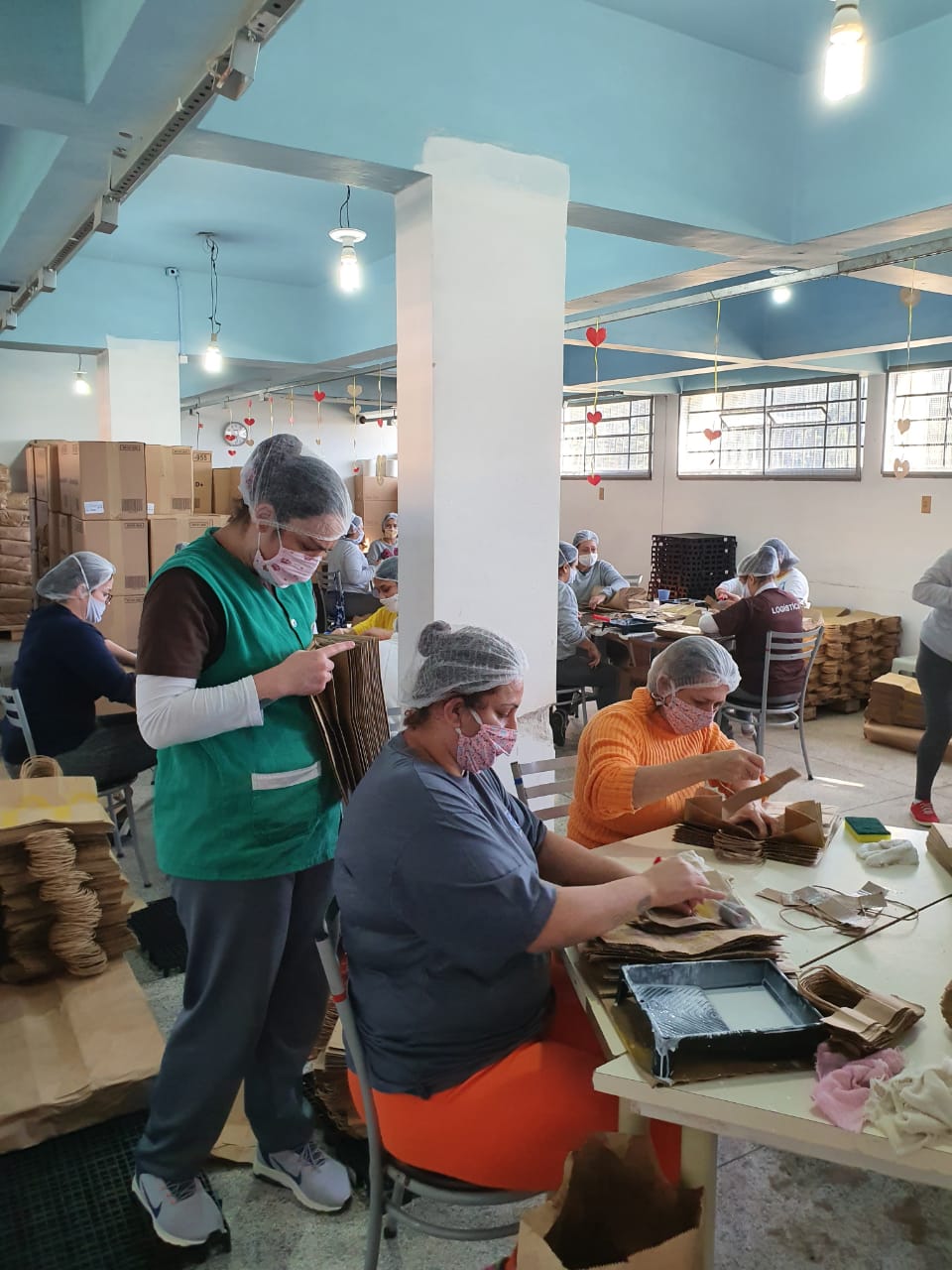 “Além de terem a pena reduzida, elas recebem 75% de um salário mínimo e, assim, têm a possibilidade de ajudar os familiares, além de aprenderem um novo ofício. É um canteiro em que todas as internas querem trabalhar”, destacou a diretora da Penitenciária Feminina do Paraná, Alessandra do Prado. O trabalho das detentas neste canteiro é colar as alças das sacolas de papel.