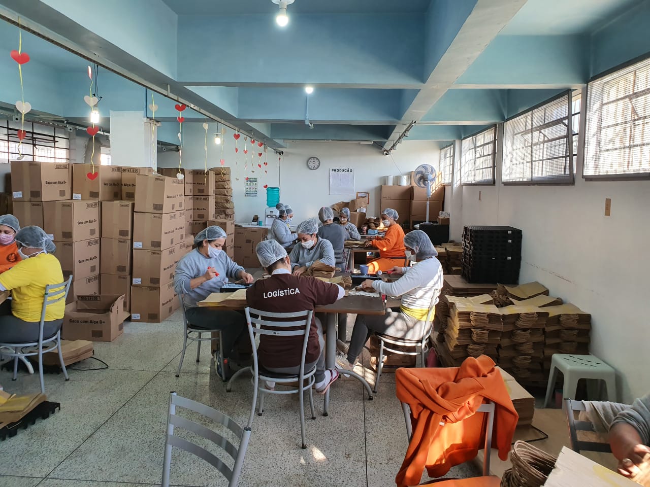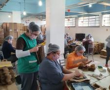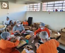 Há um ano, os pacotes de entrega de uma grande rede de fast food são produzidos dentro dos muros da Penitenciária Feminina do Paraná (PFP), em Piraquara, na Região Metropolitana de Curitiba. No canteiro de trabalho, 50 mulheres colam e montam as sacolas de papel, que, em seguida, são distribuídas para restaurantes do Brasil e da América Latina. Diariamente, são finalizadas cerca de 40 mil unidades do produto.