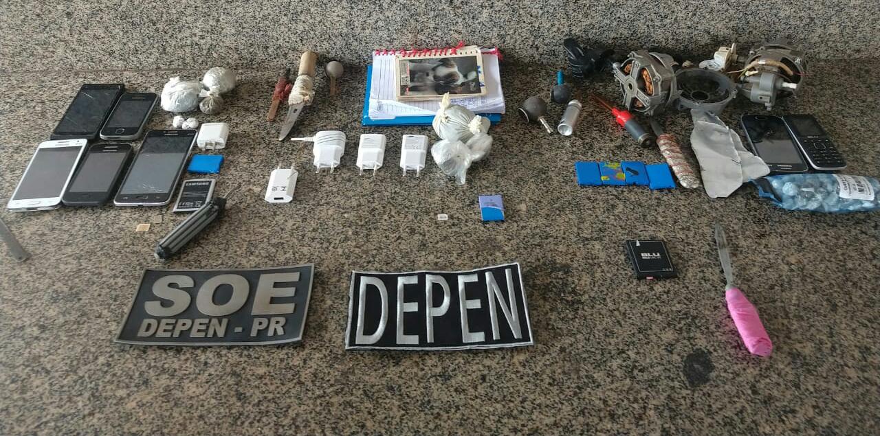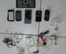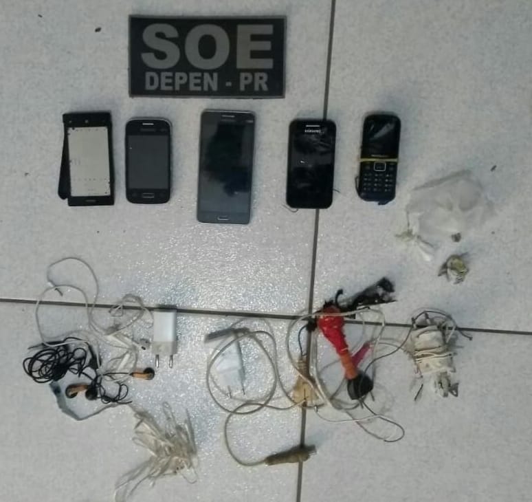 Agentes penitenciários do Setor de Operações Especiais (SOE) da regional de Maringá do Departamento Penitenciário (Depen), no noroeste do estado, fizeram uma operação de revista na Cadeia Pública de Cianorte. O objetivo da ação, que foi desencadeada nesta segunda-feira (09/12), é prevenir fugas e apreender materiais não permitidos dentro da unidade prisional. Ao todo, entre vários outros ilícitos, sete celulares foram apreendidos.
