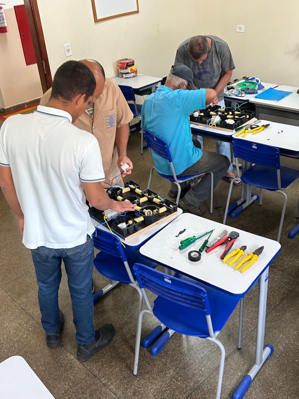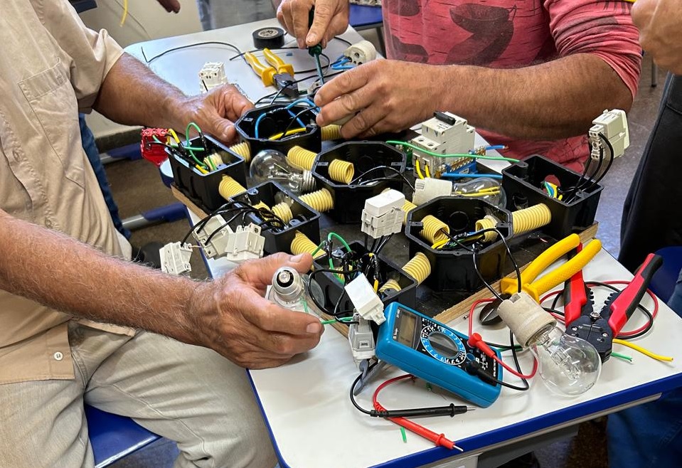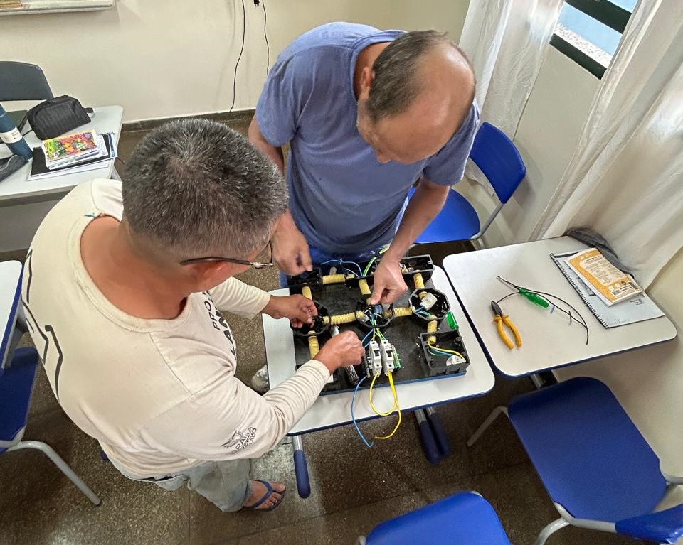 No curso de eletricidade predial, os internos foram capacitados para trabalhar com instalações elétricas residenciais, aprendendo sobre a montagem de circuitos e cuidados para garantir segurança e eficiência.