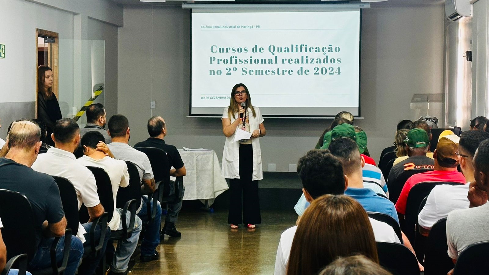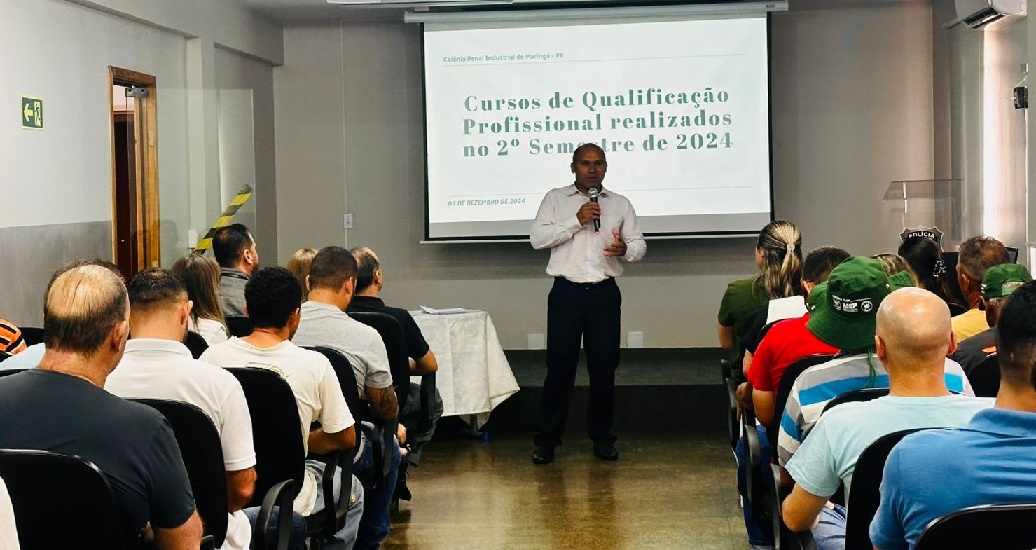 A Polícia Penal do Paraná (PPPR) realizou nesta terça-feira (3) a cerimônia de entrega de certificados para pessoas privadas de liberdade (PPL) da Colônia Penal Industrial de Maringá (CPIM), que concluíram cursos profissionalizantes oferecidos em parceria com o Serviço Nacional de Aprendizagem Rural (Senar) e o Serviço Nacional de Aprendizagem Industrial (Senai). Ao todo, 78 custodiados participaram das capacitações realizadas entre agosto e dezembro, fortalecendo a proposta de ressocialização por meio da educação e qualificação profissional.