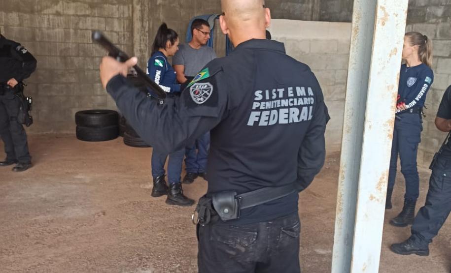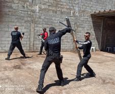 “Abordamos algumas técnicas básicas que podem ser usadas na unidade penal, como ataques que podem cessar uma ameaça e defesas contra agressões que os agentes podem vir a sofrer dos presos. Além disso, falamos de condução de internos e noções de imobilização”, contou um dos instrutores, Elton Paulo Estevão da Silva.