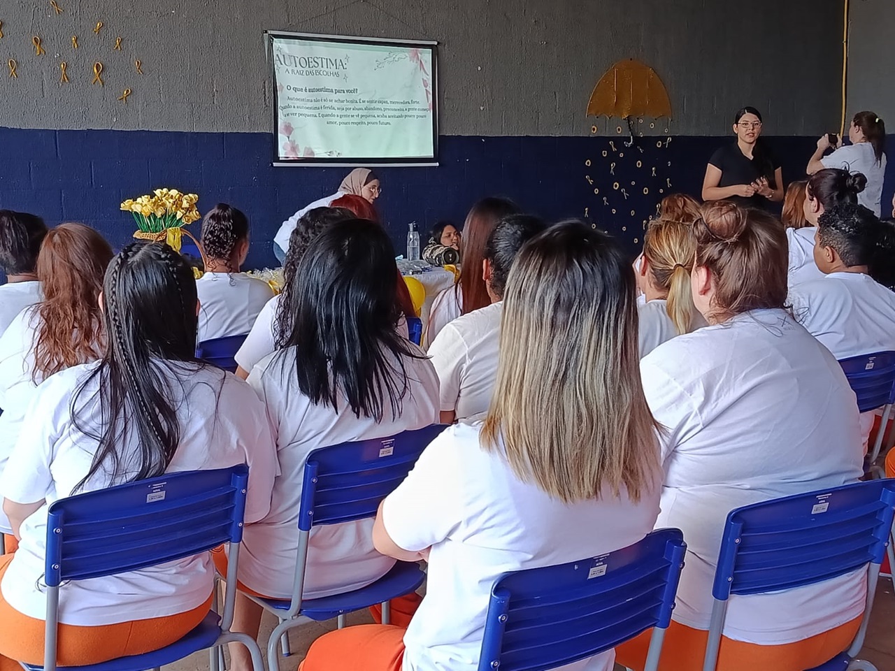O evento contou com uma palestra ministrada por alunas do curso de Direito do Centro de Ensino Superior de Foz do Iguaçu (Cesufoz). A atividade teve como foco a reflexão sobre autoestima e valorização da vida, incentivando o diálogo entre as custodiadas. Dinâmicas e momentos de interação também integraram a programação.