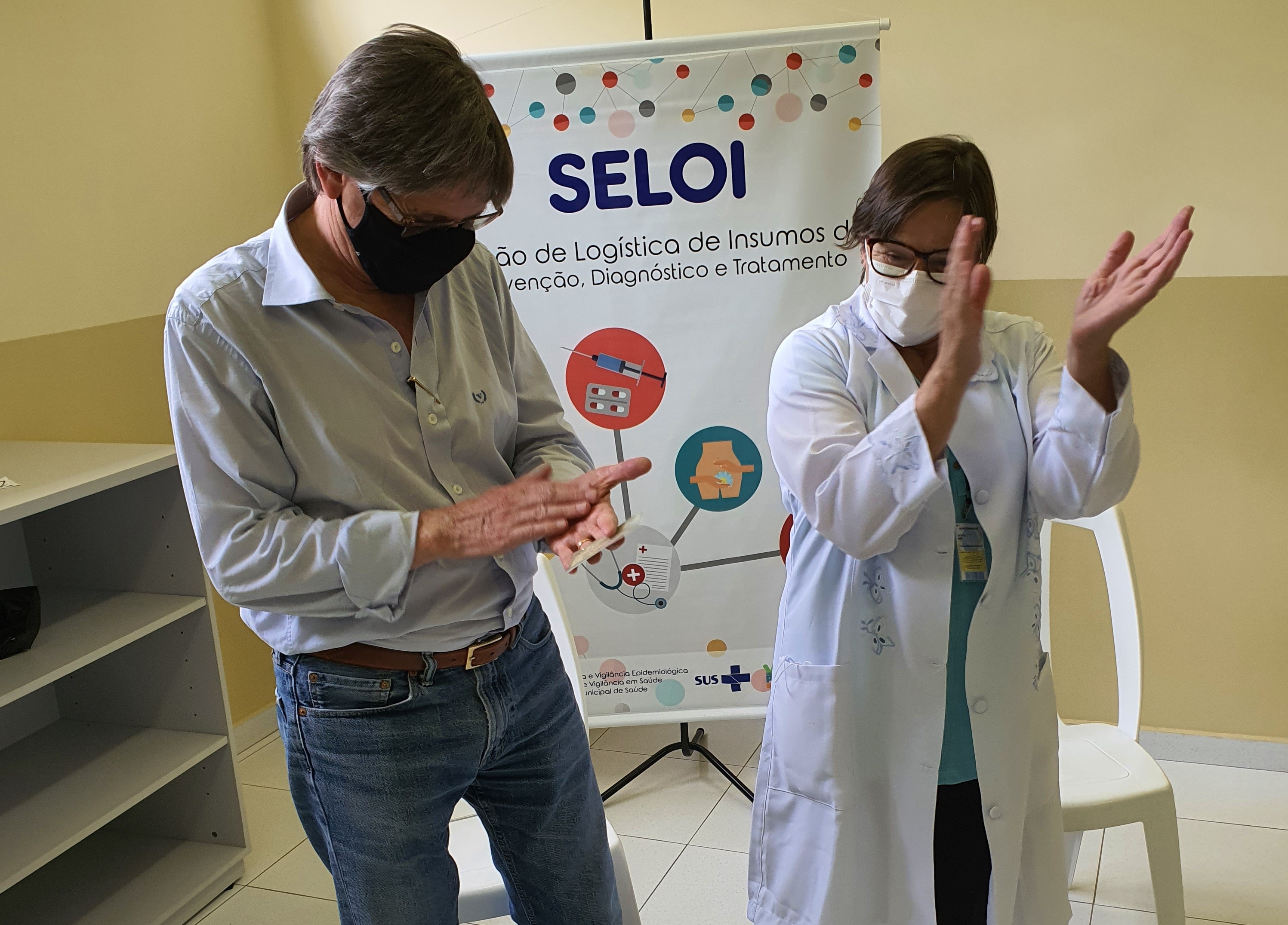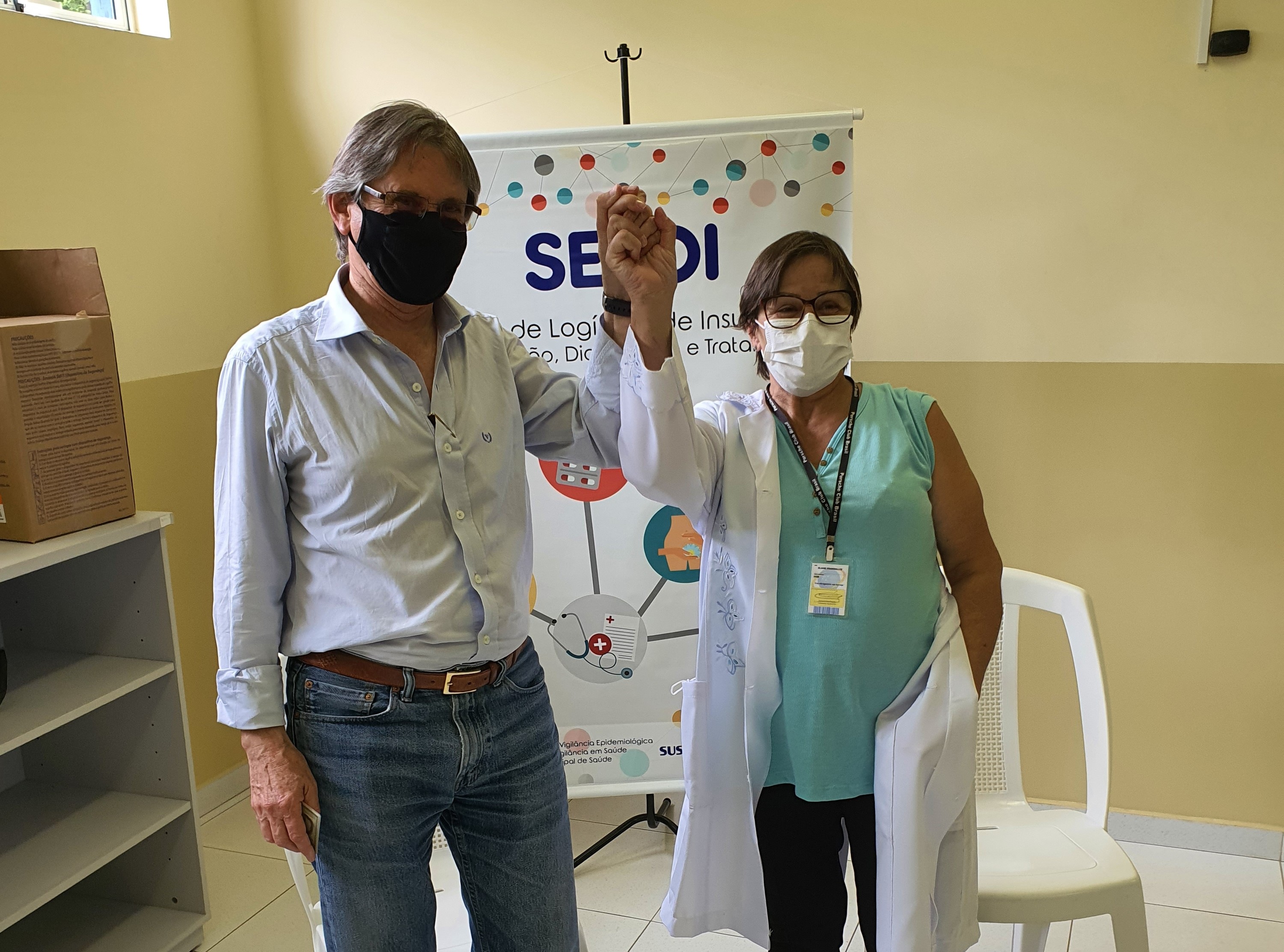 VACINAÇÃO – Receberam as primeiras doses profissionais da saúde e do grupo de risco que atuam na linha de frente do CMP, que funciona como centro de atendimento à Covid-19 no sistema prisional do Estado. Neste ato simbólico, foram vacinados o médico Ivan Pinto Arantes e a auxiliar de enfermagem Eliane Frangullys.